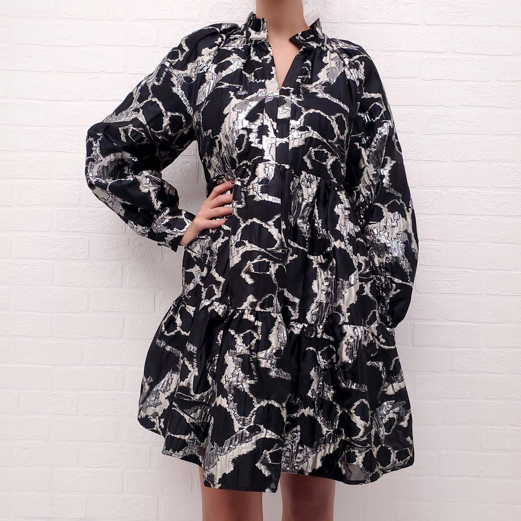 STINE GOYA METALIC PATTERNED BABYDOLL DRESS - SIZE XS
