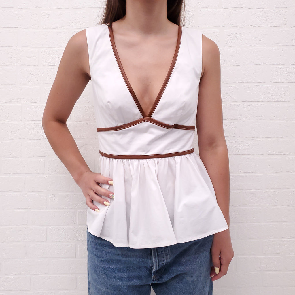STAUD WHITE PEPLUM BLOUSE WITH FAUX LEATHER DETAIL - SIZE 4