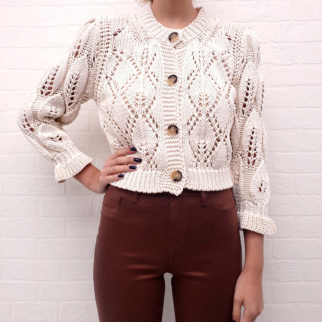 BA&SH CREAM CABLE KNIT CARDIGAN - SIZE 0/XS