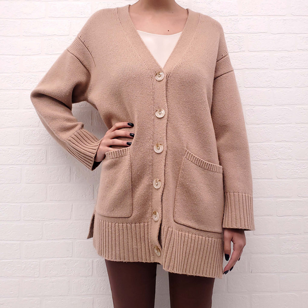 LOULOU STUDIO OVERSIZED CAMEL LONG CARDIGAN - SIZE S