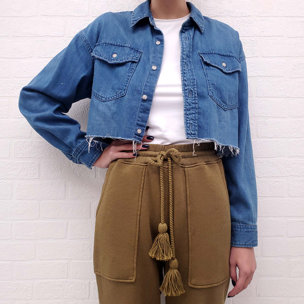 MOUSSY CROPPED DENIM SHIRT - SIZE XS