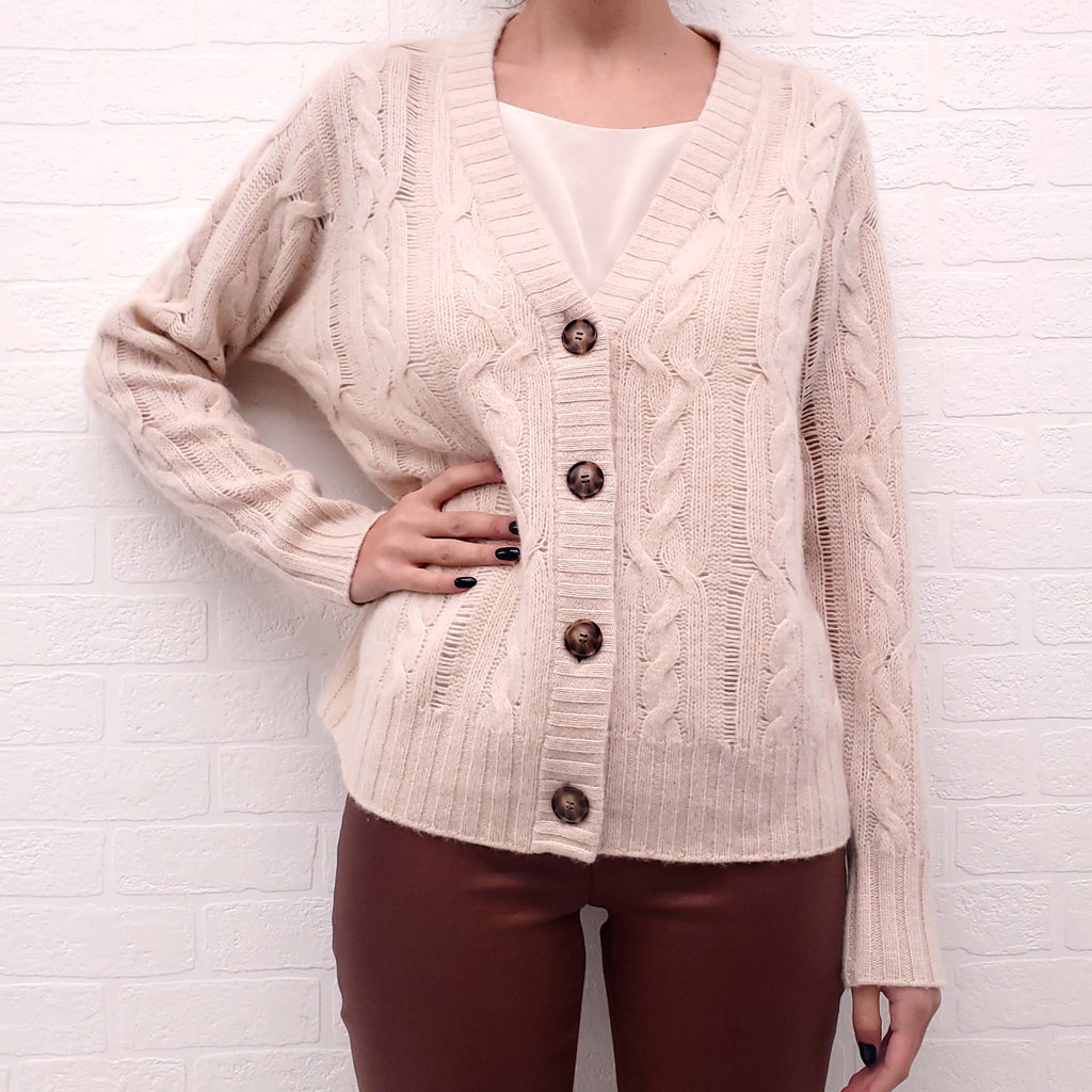 NAADAM CREAM CASHMERE CABLEK KNIT CARDIGAN - SIZE L