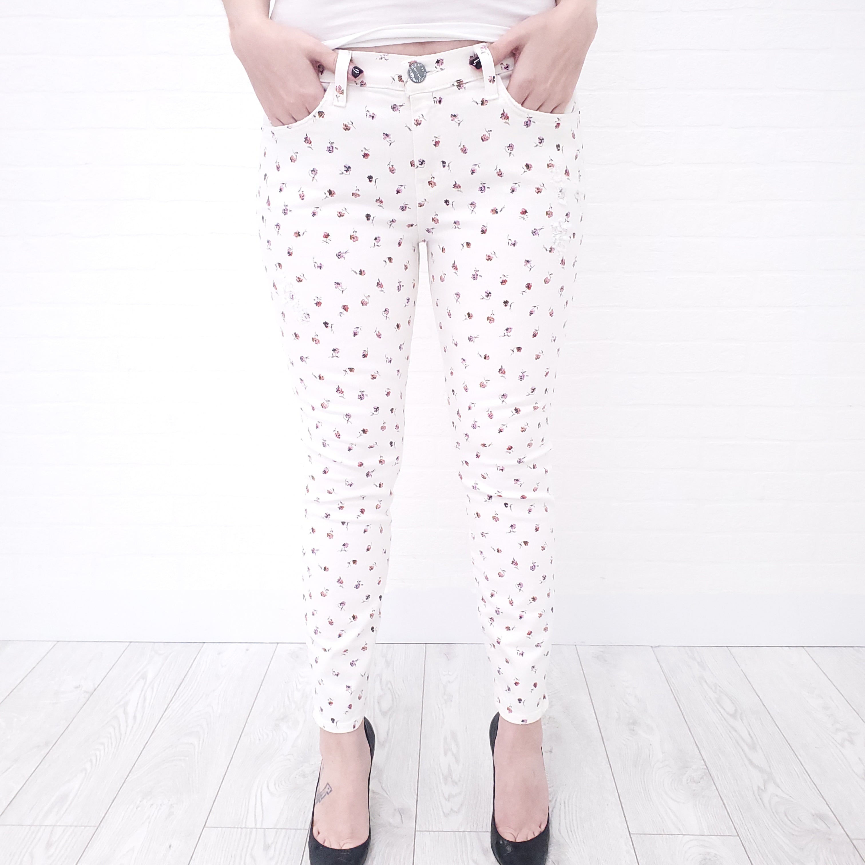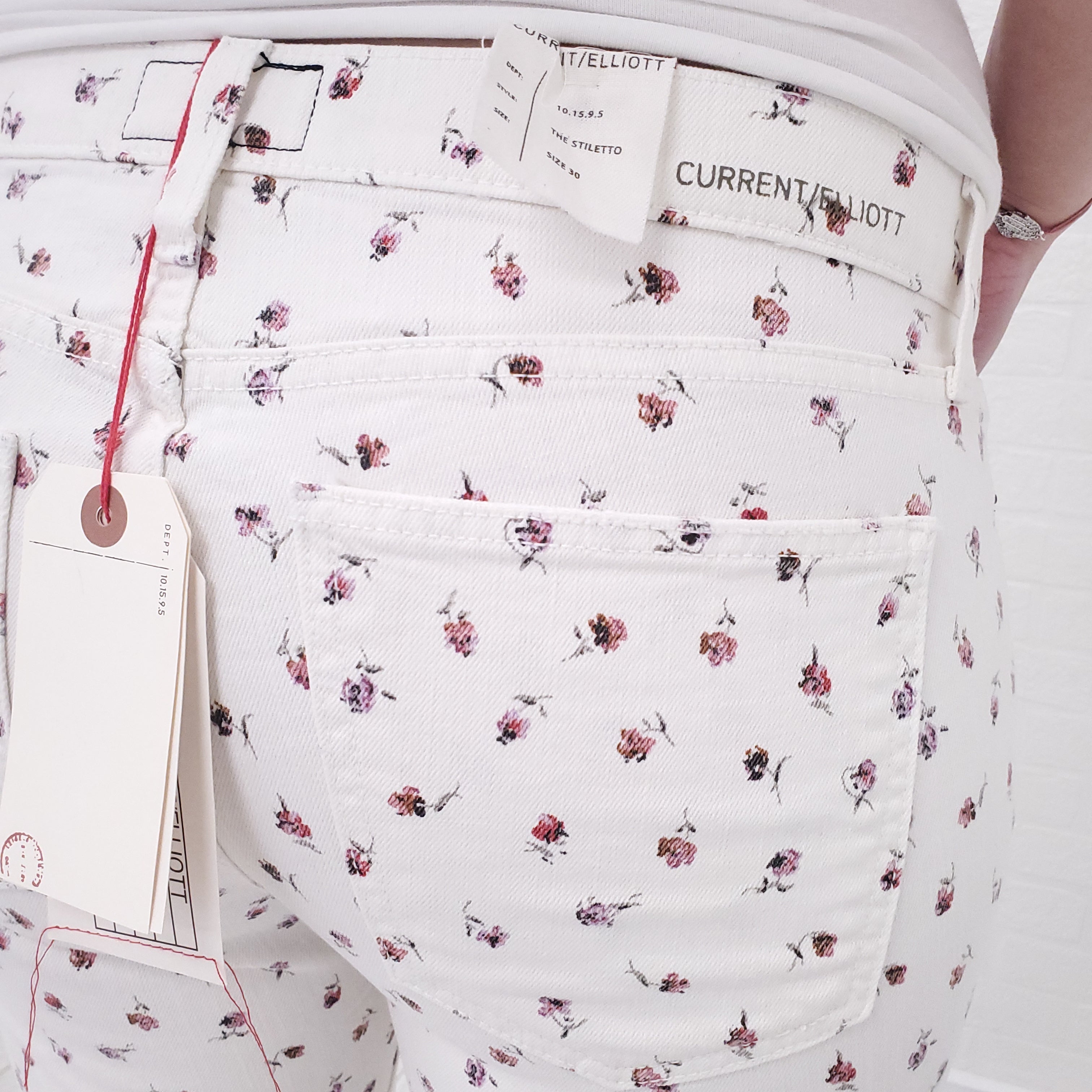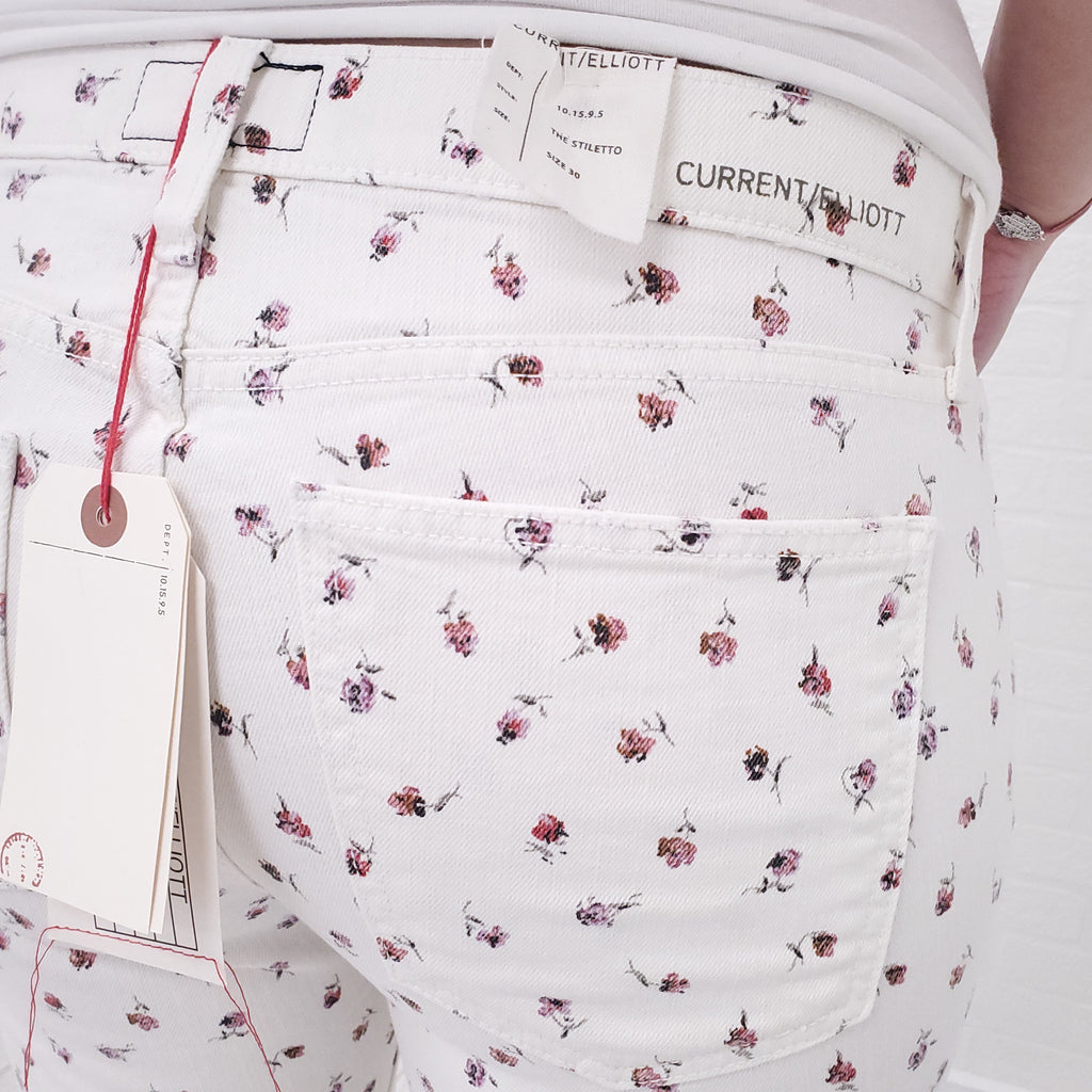 CURRENT/ELLIOTT FLORAL WHITE DENIM JEANS - SIZE 30
