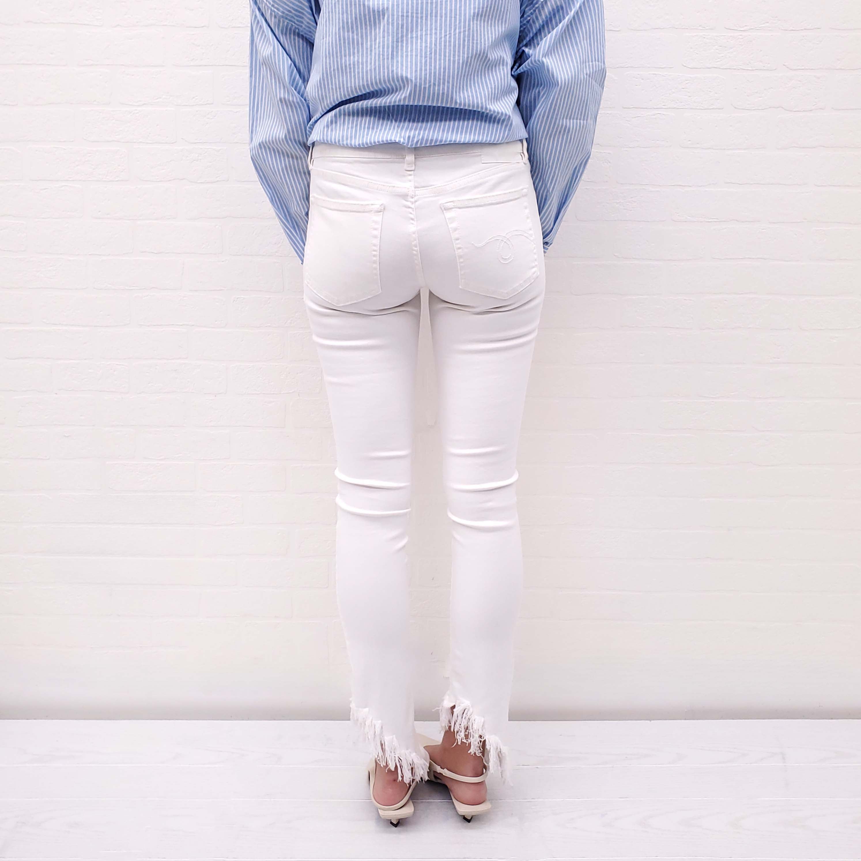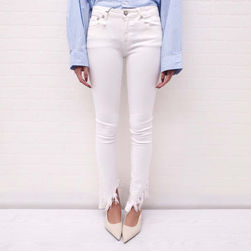 R13 'KATE SKINNY LONG' WHITE DISTRESSED BOTTON DENIM - SIZE 28