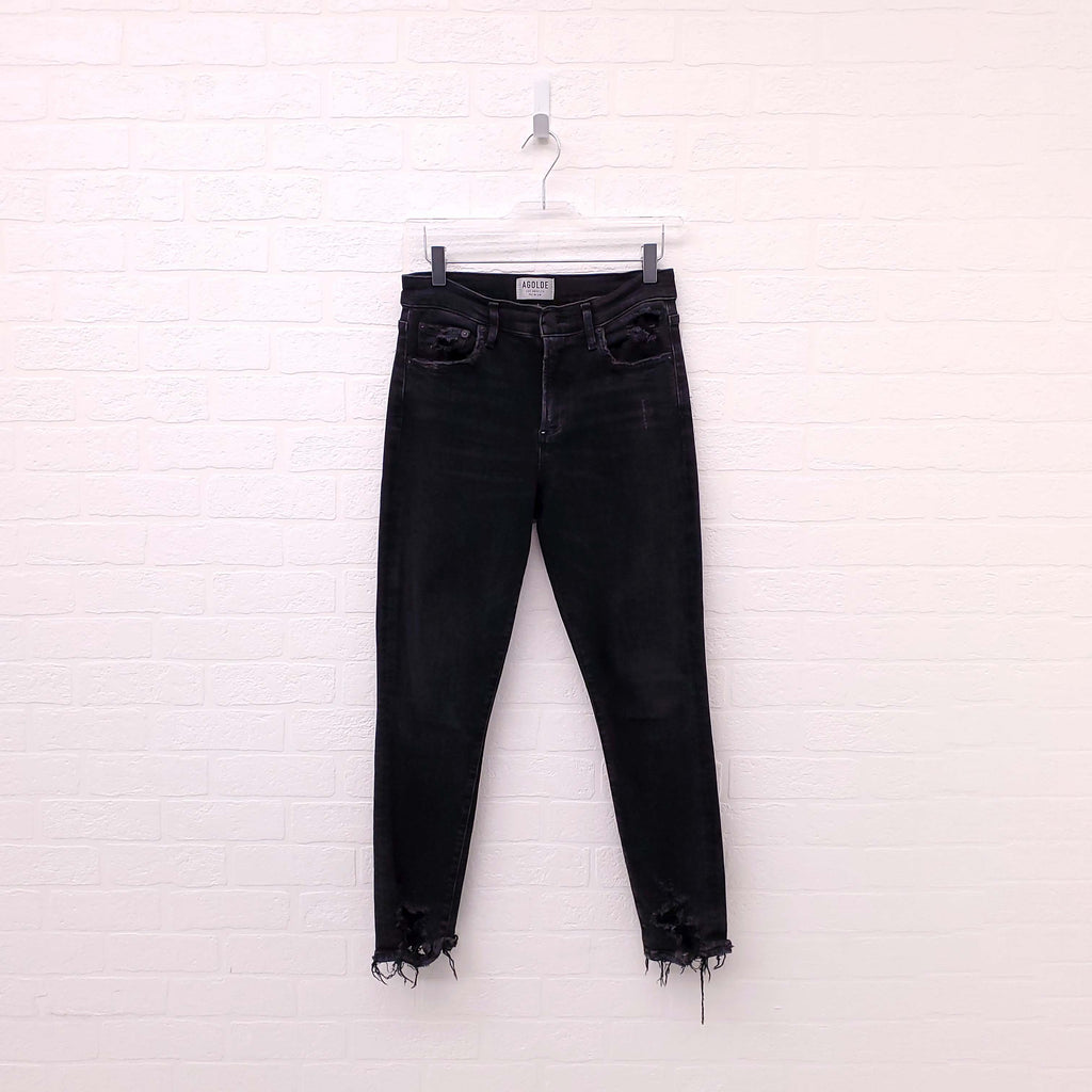 AGOLDE DARK GREY DISTRESSED STRETCH JEANS - SIZE 28