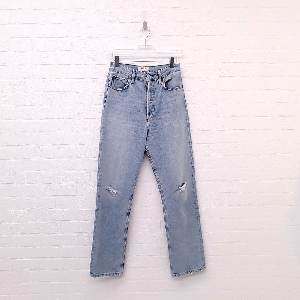 AGOLDE DISTRESSED LIGHT WASH JEANS - SIZE 24