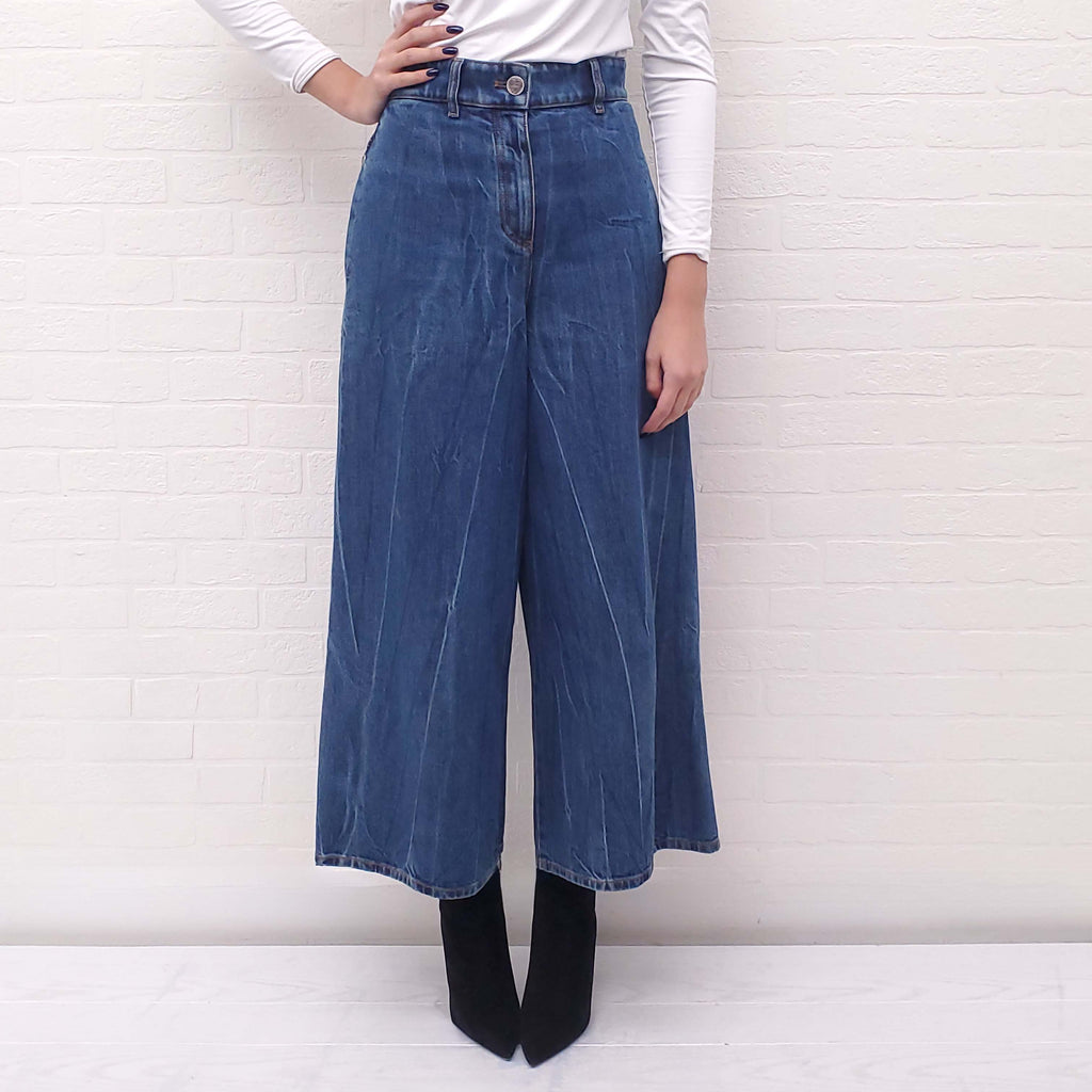 CHANEL WIDE LEG CROPPED LOGO JEANS - SIZE 36