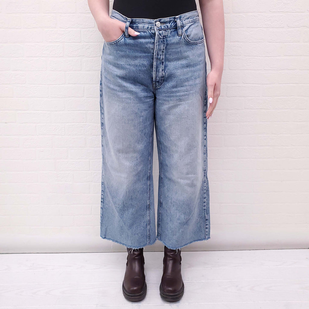 FRAME WIDE LEG FRAYED LIGHT WASH JEANS - SIZE 30
