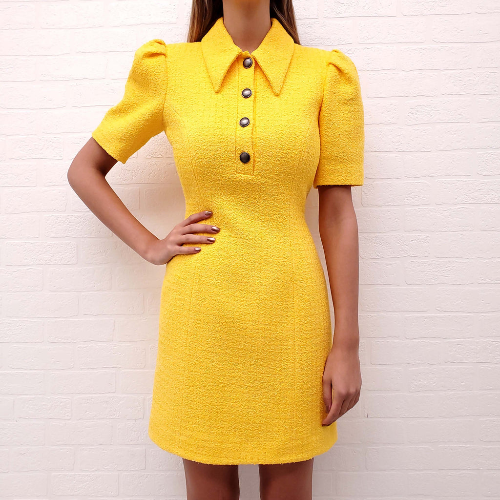 ALESSANDRA RICH YELLOW TWEED DRESS - SIZE 38