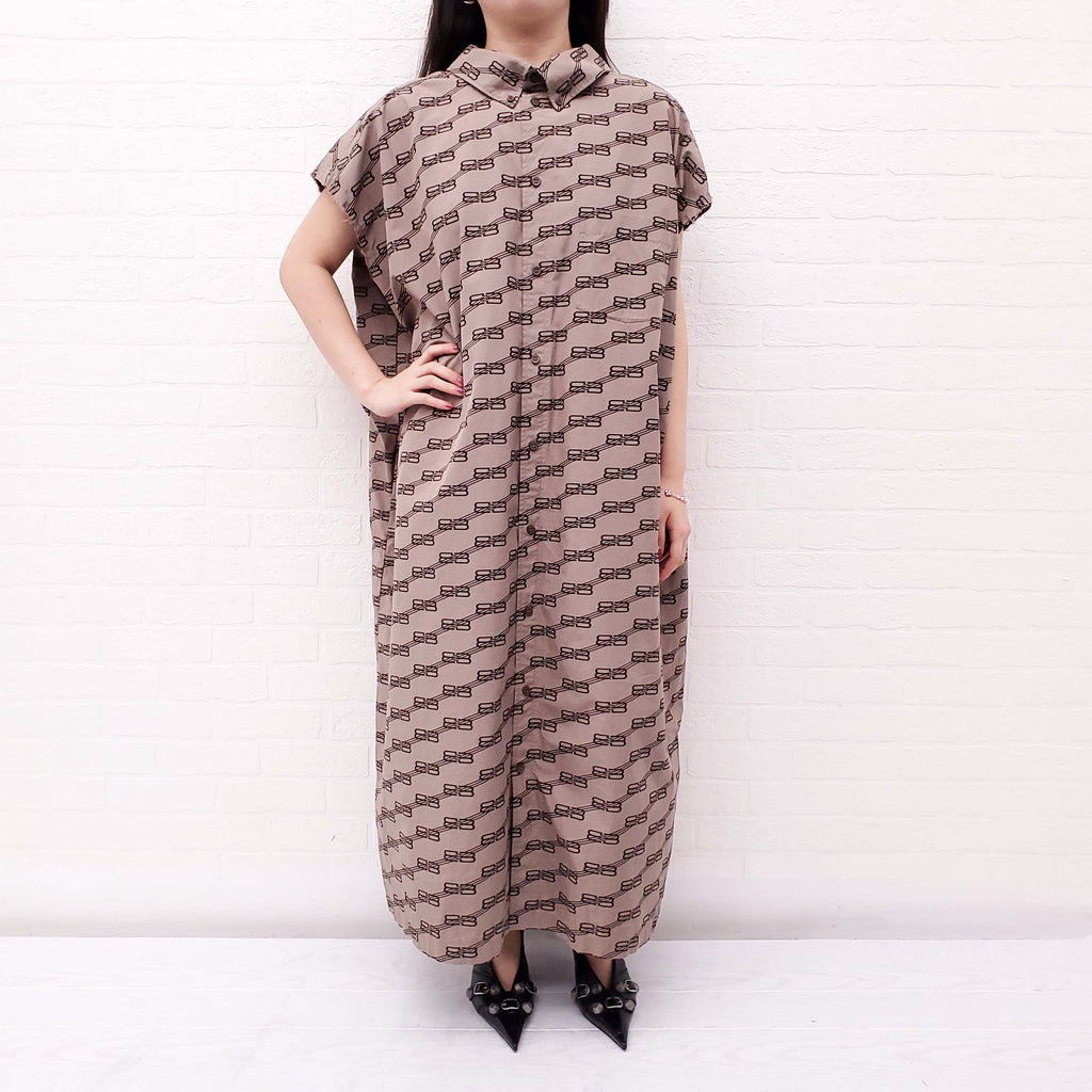 BALENCIAGA OVERSIZED BROWN LOGO TUNIC DRESS - SIZE 42