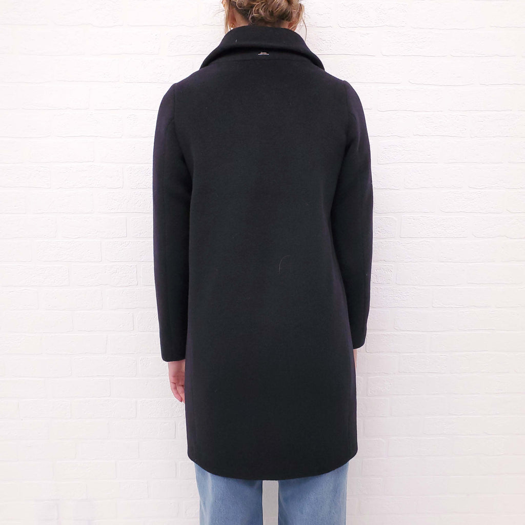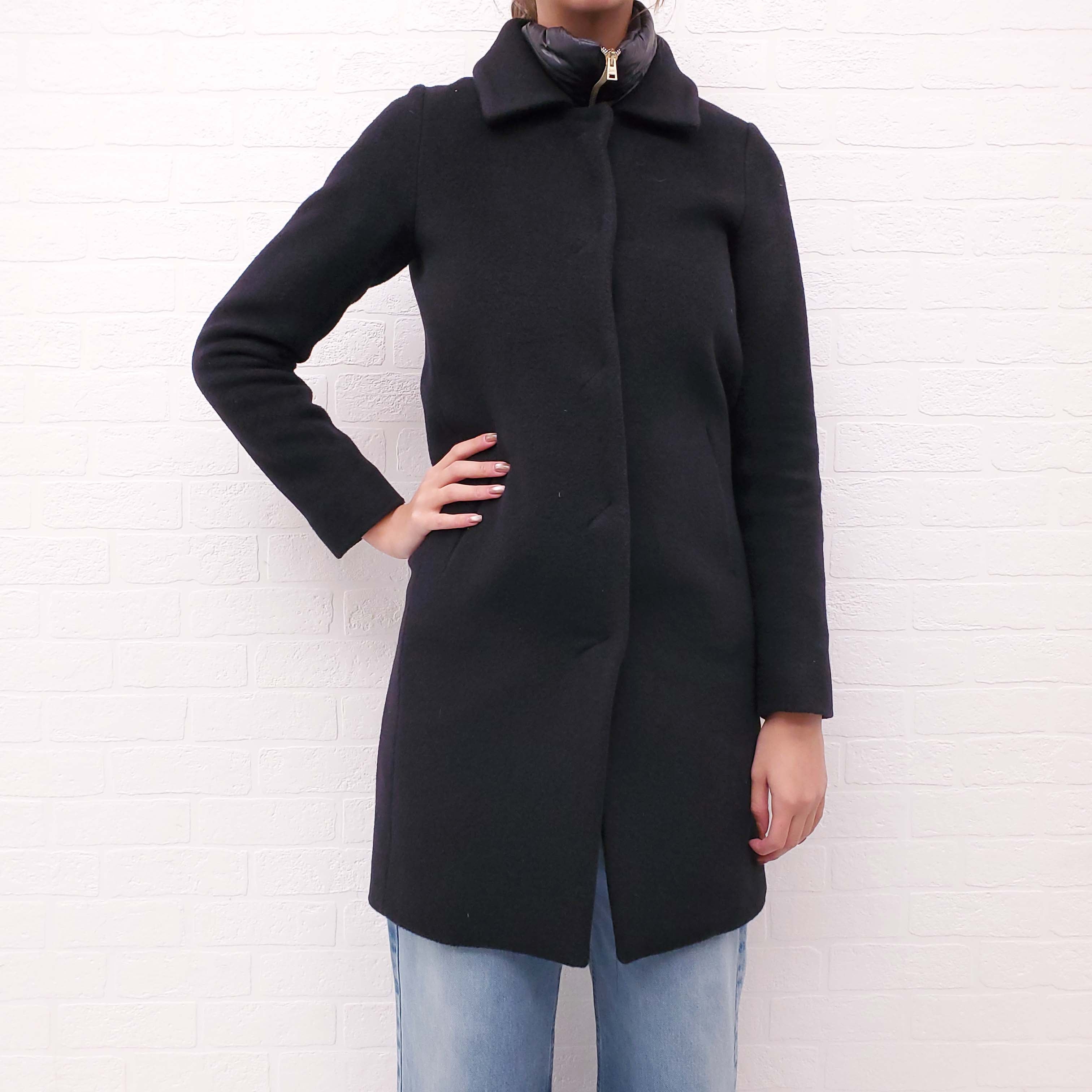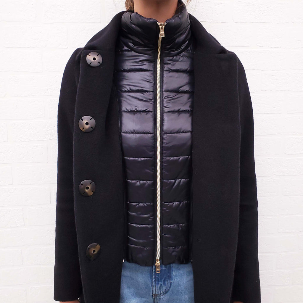 HERNO BLACK WOOL COAT WITH PUFFER INSERT - SIZE 38
