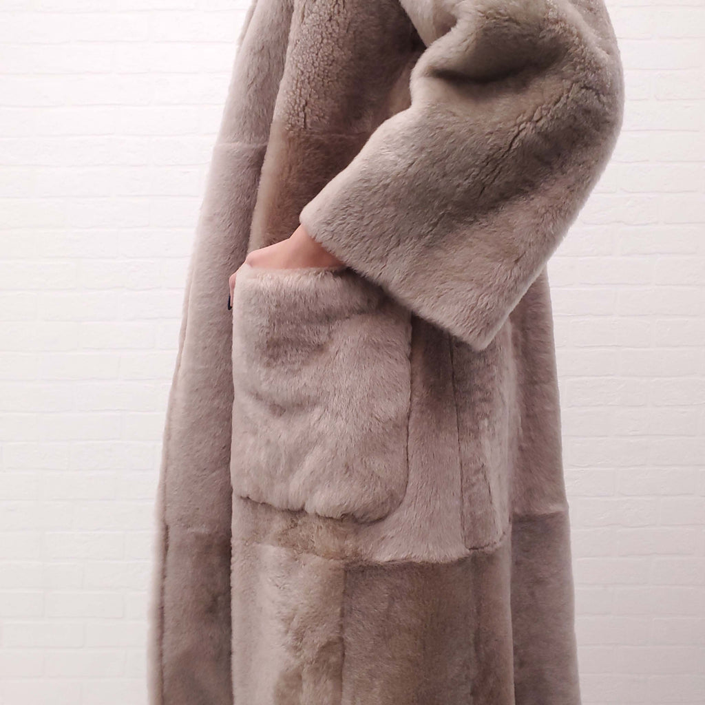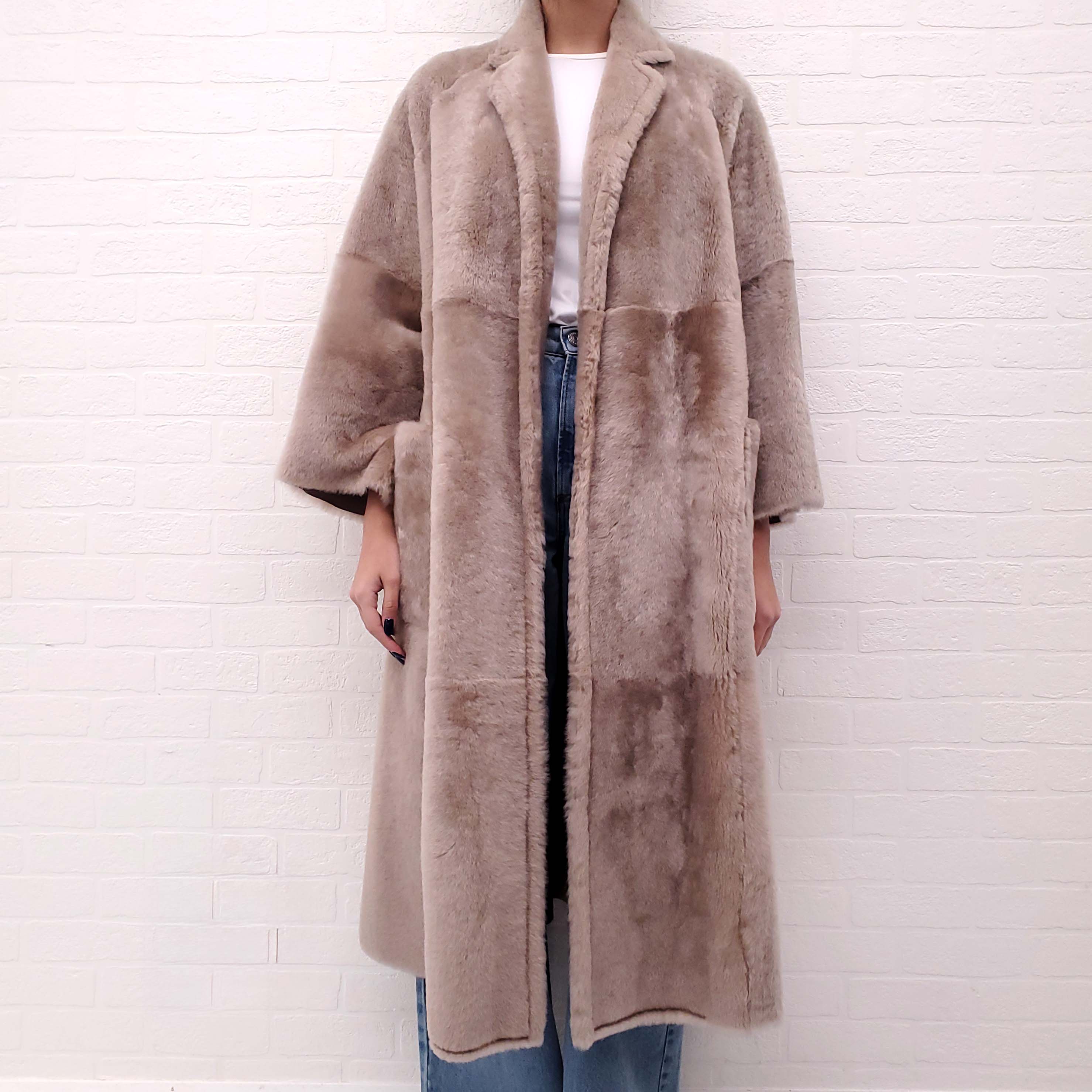MAX MARA TAUPE SHEARLING 'CALMI' COAT - SIZE 0