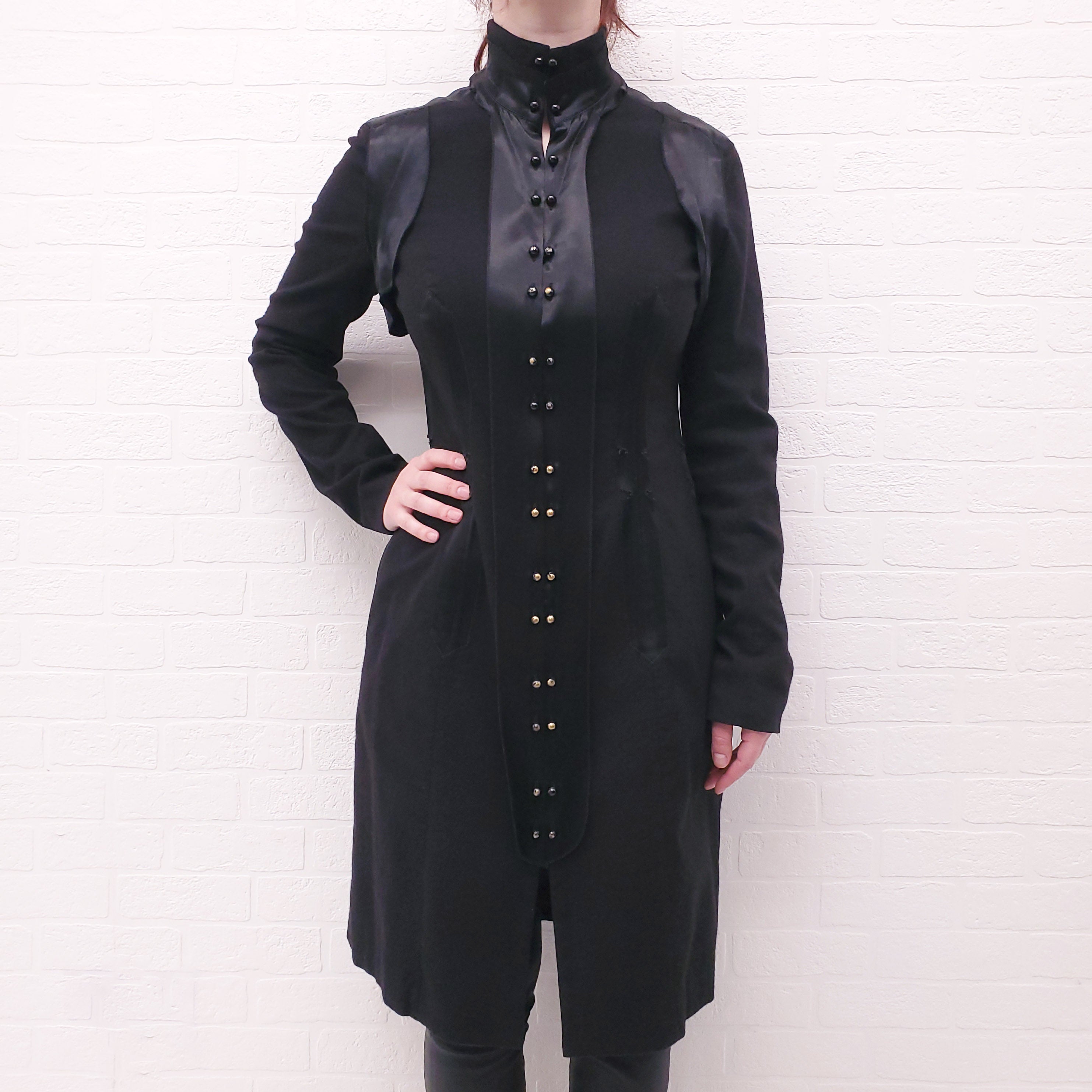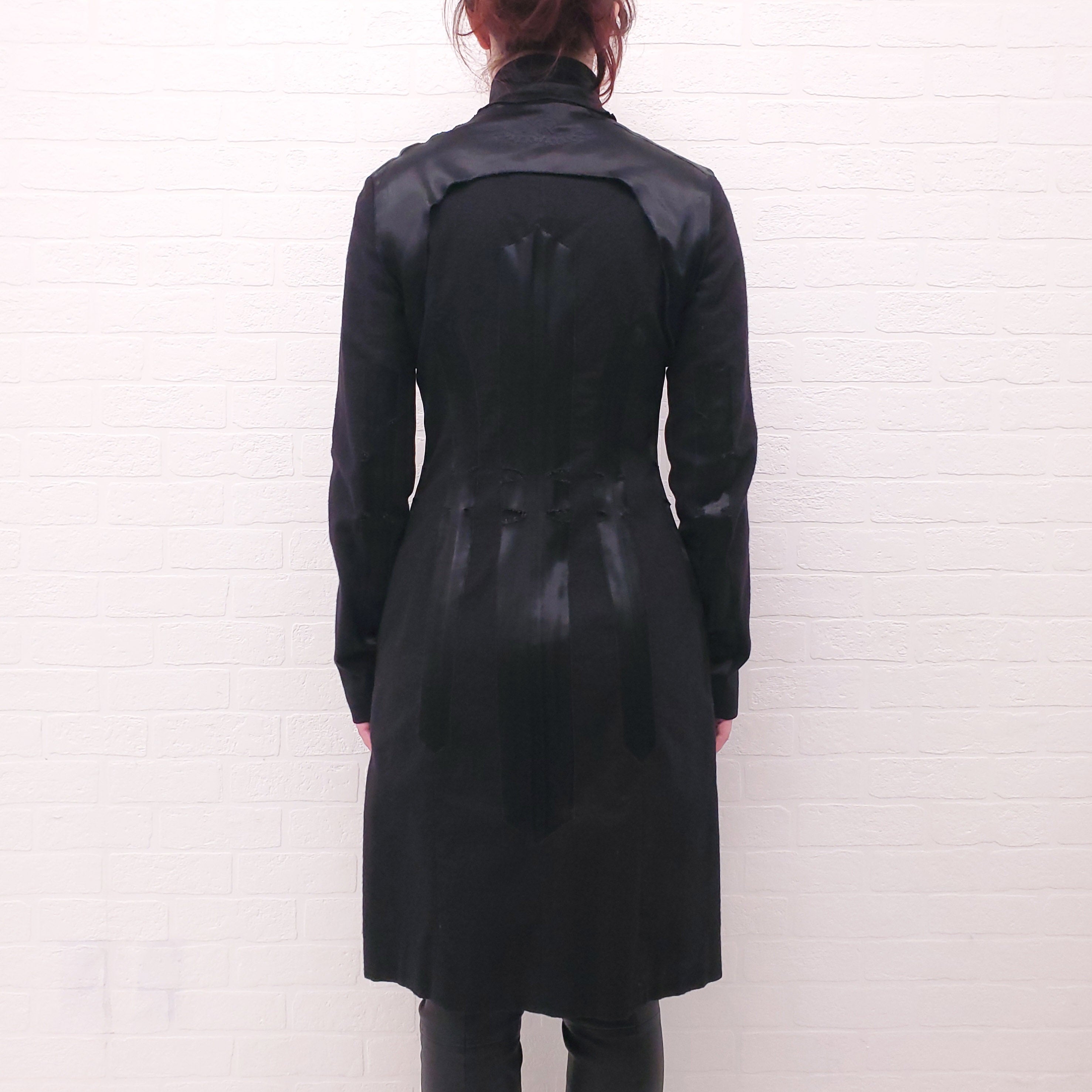 ROCHAS BLACK COAT WITH SILK DETAIL - SIZE 40
