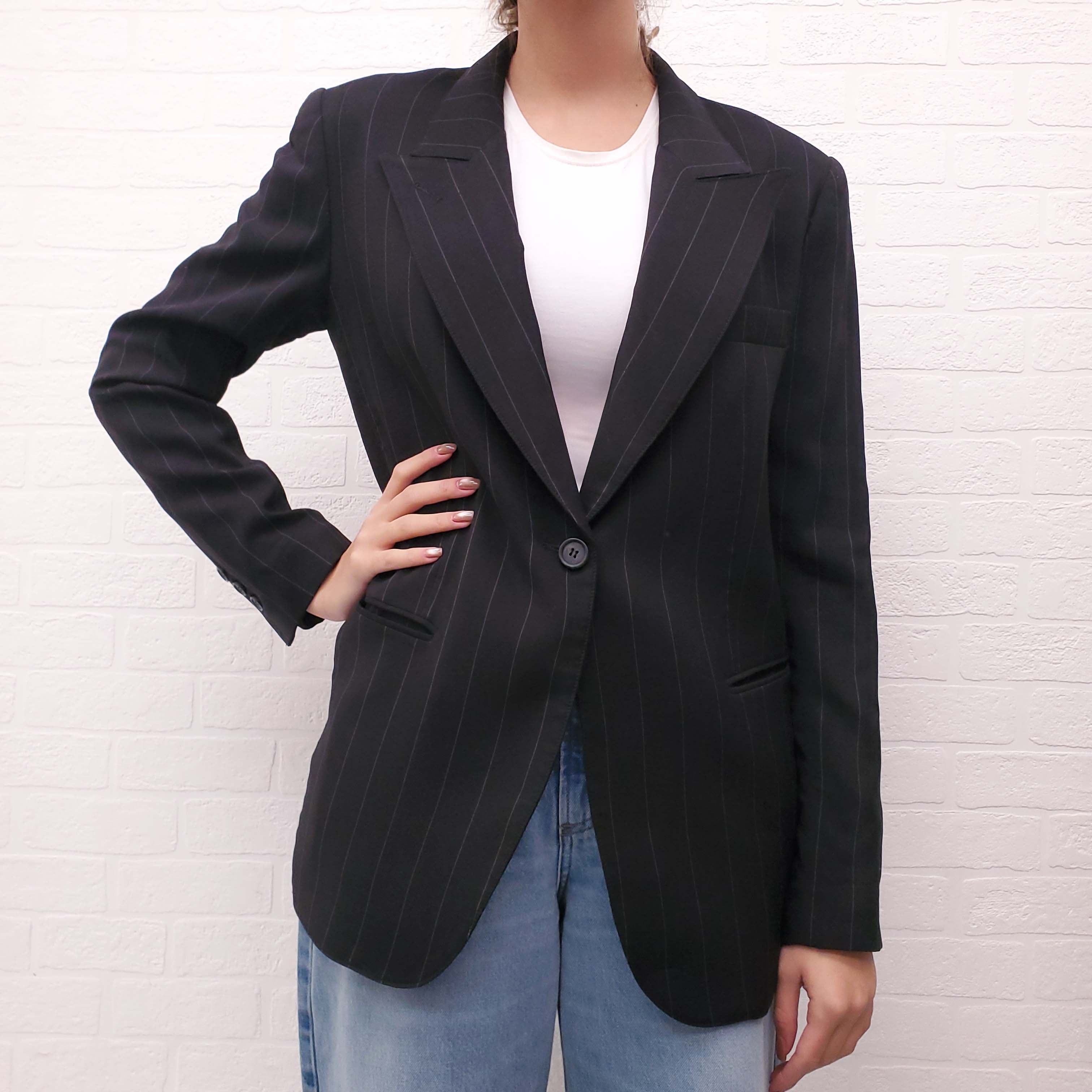 SMYTHE OVERSIZED BLACK PINSTRIPE BLAZER - SIZE S