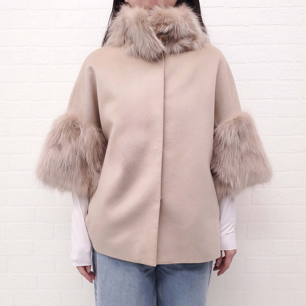 BULLY KHAKI WOOL AND RACCOON FUR SHORT SLEEVE JACKET - SIZE 44