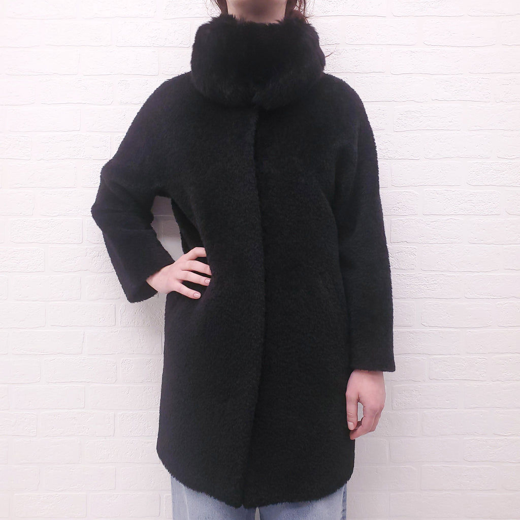 MAX MARA STUDIO BLACK COAT WITH FUR DETAIL - SIZE 36