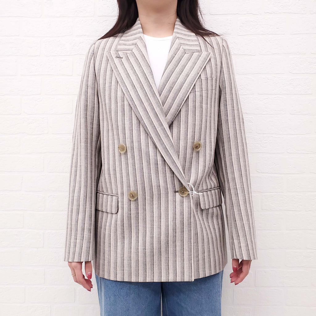 ACNE STUDIOS OVERSIZED CREAM AND GREY STRIPED BLAZER - SIZE 34