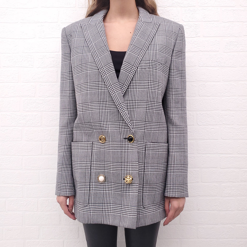 BALMAIN HOUNDSTOOTH DOUBLE BREASTED BLAZER WITH MISMATCHED BUTTONS - SIZE 38