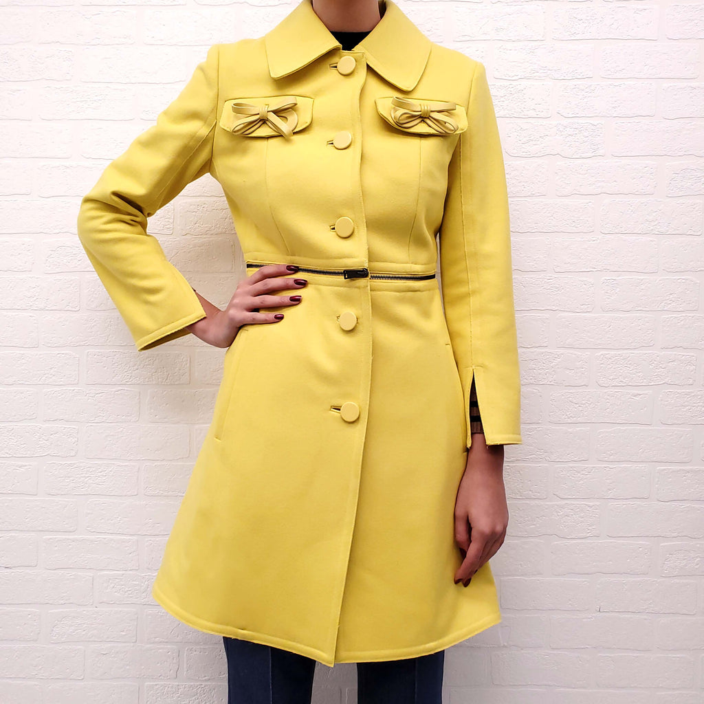 FENDI YELLOW COAT WITH BOW AND ZIPPER DETAIL - SIZE 38