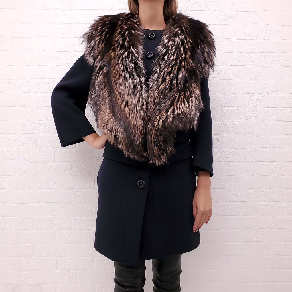 PRADA NAVY COAT WITH FOX FUR COLLAR - SIZE 42
