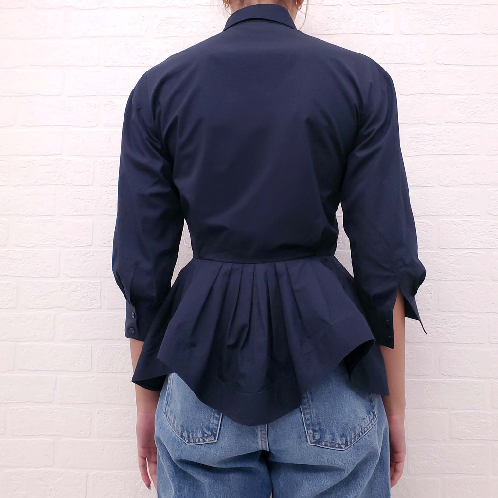 ALAÏA NAVY PEPLUM BUTTON UP BLOUSE - SIZE 38