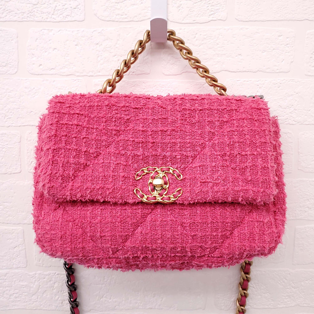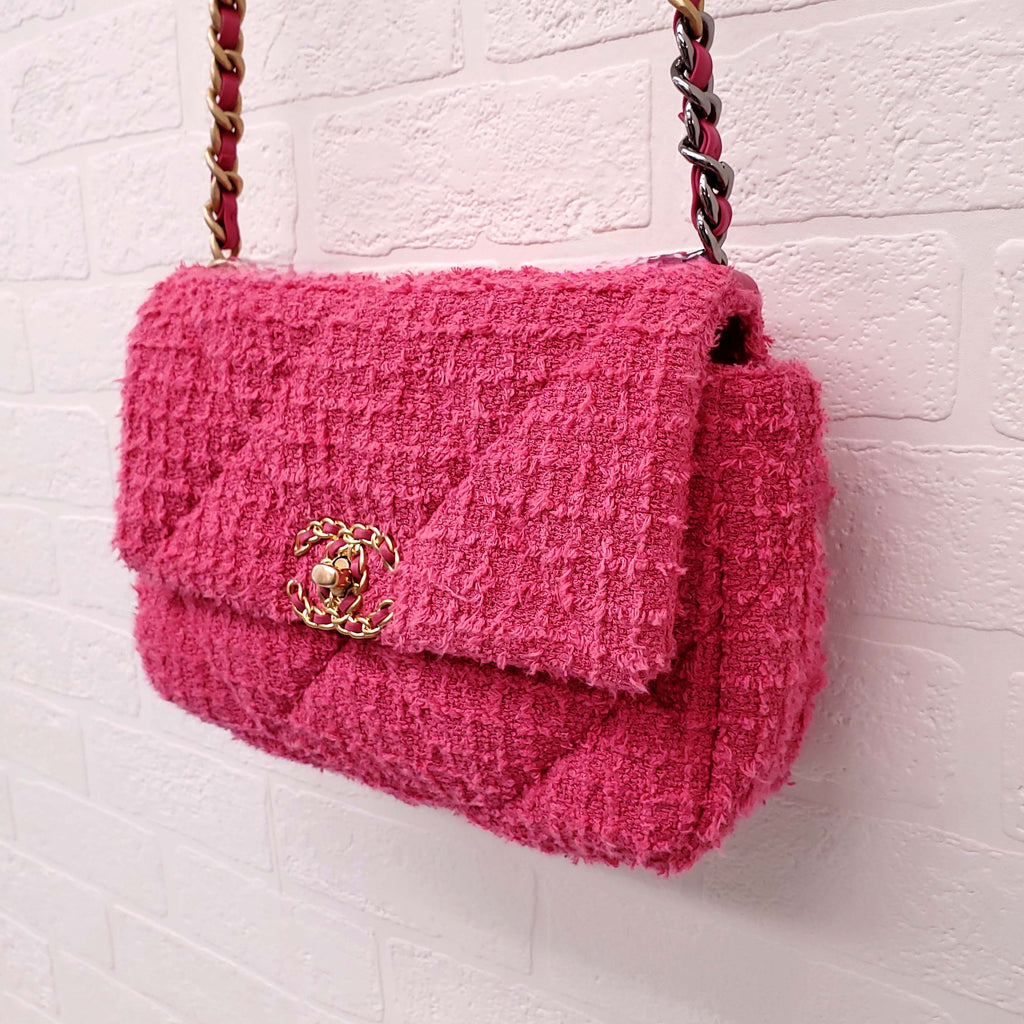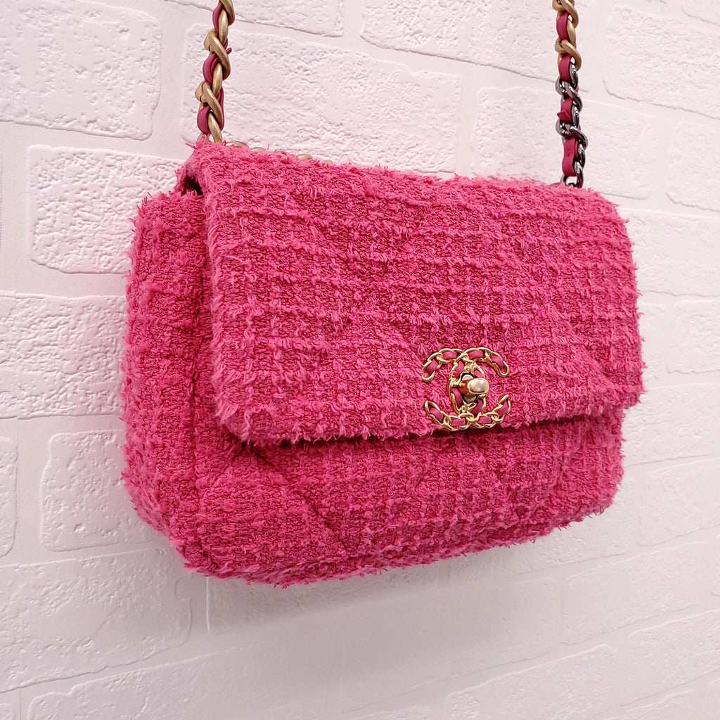 CHANEL HOT PINK TWEED 'MEDIUM 19' BAG