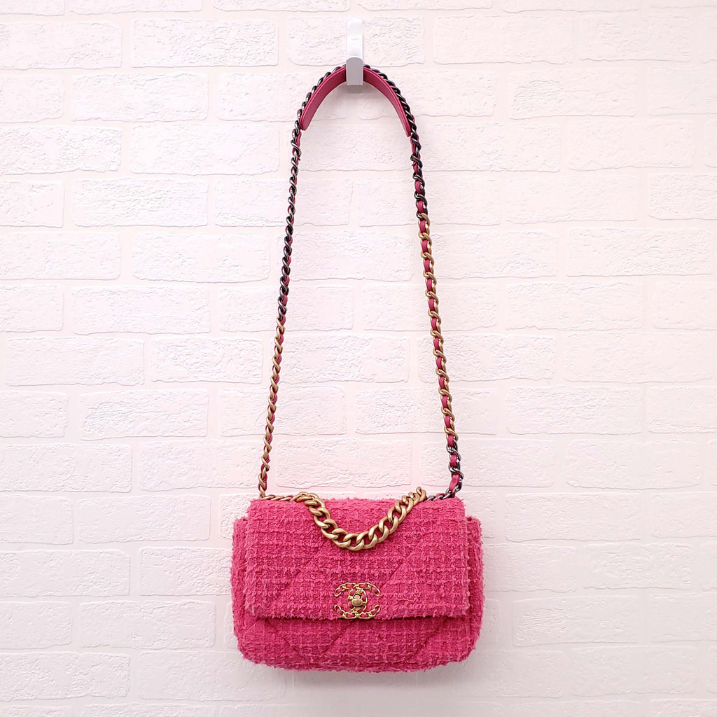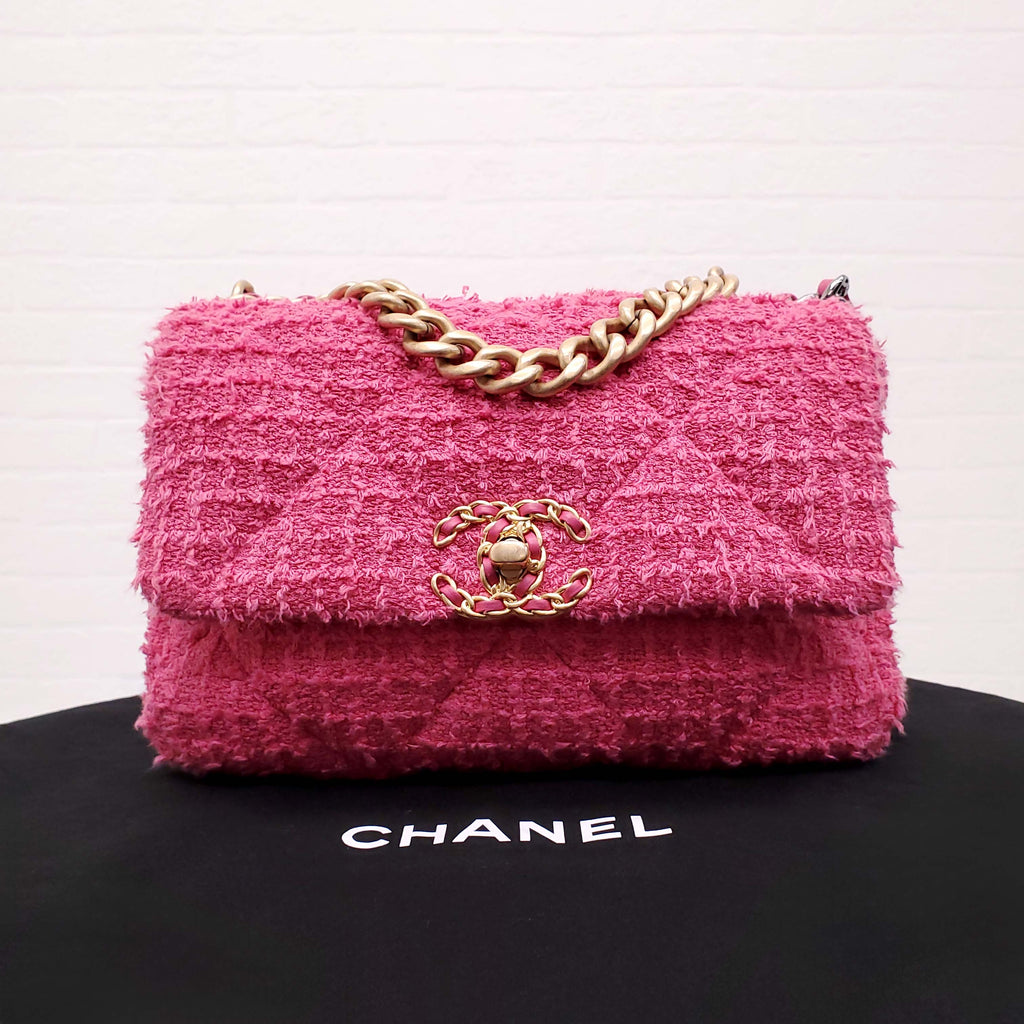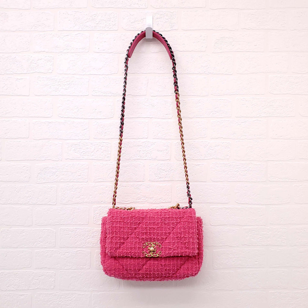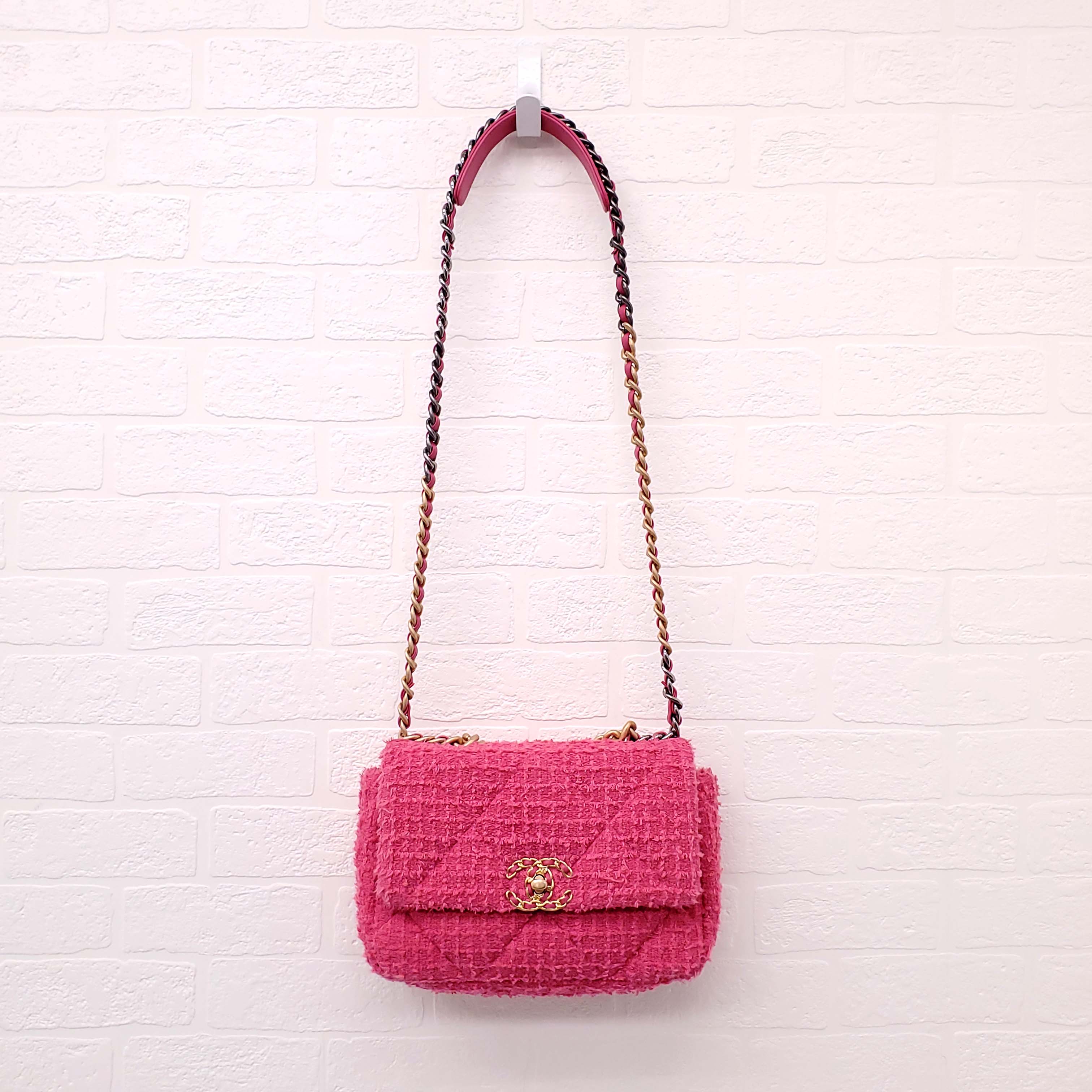 CHANEL HOT PINK TWEED 'MEDIUM 19' BAG