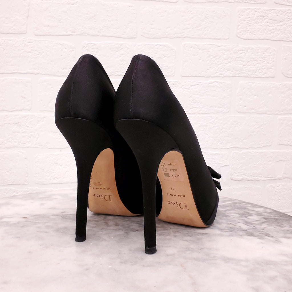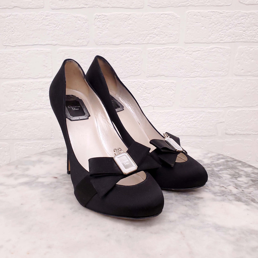 CHRISTIAN DIOR SATIN HEELS WITH SILVER CHARM - SIZE 37