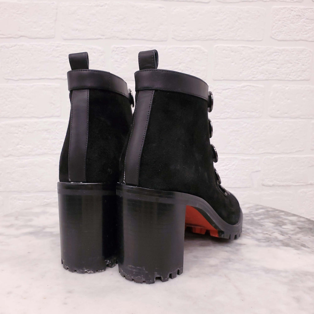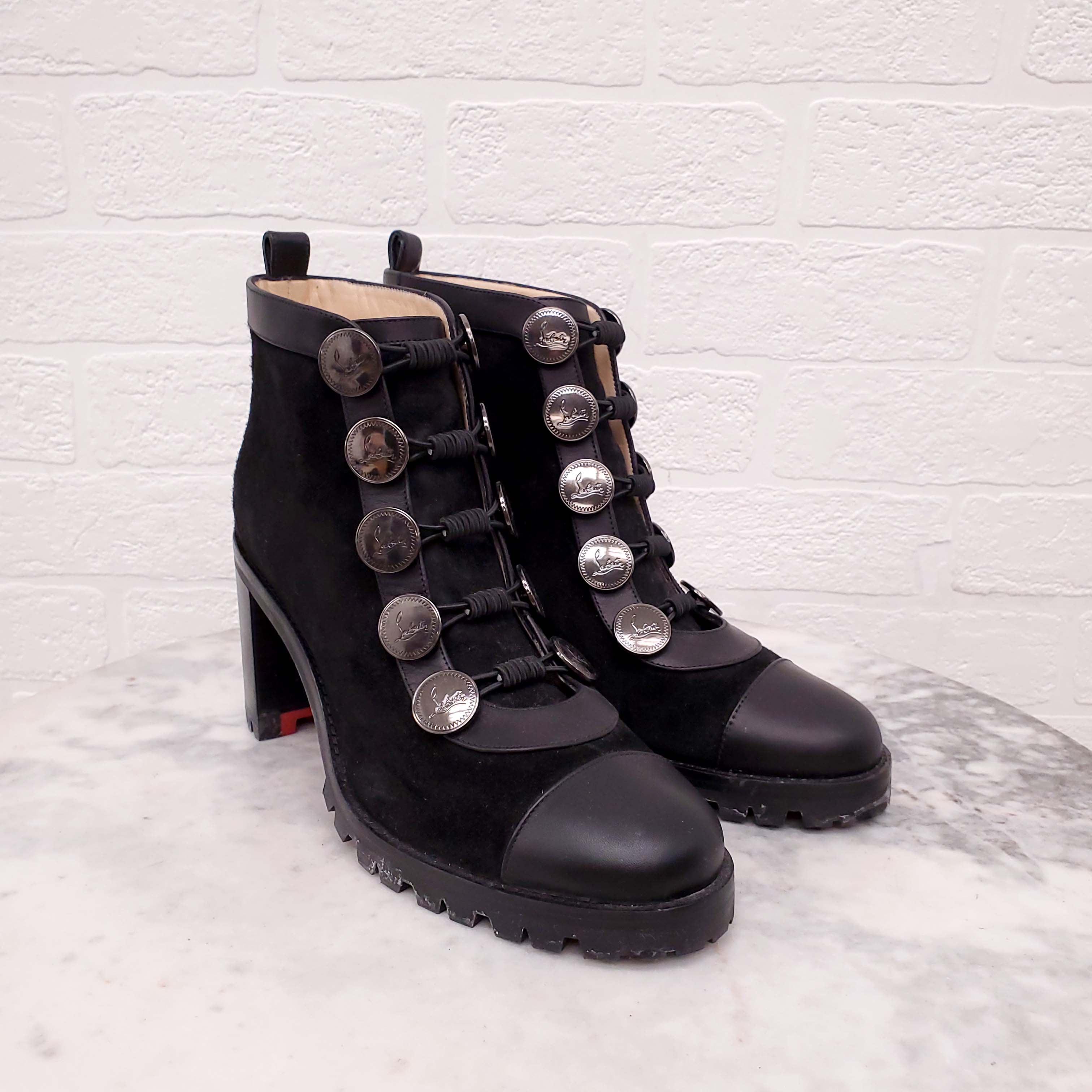CHRISTIAN LOUBOUTIN BLACK SUEDE COMBAT BOOTIES - SIZE 37