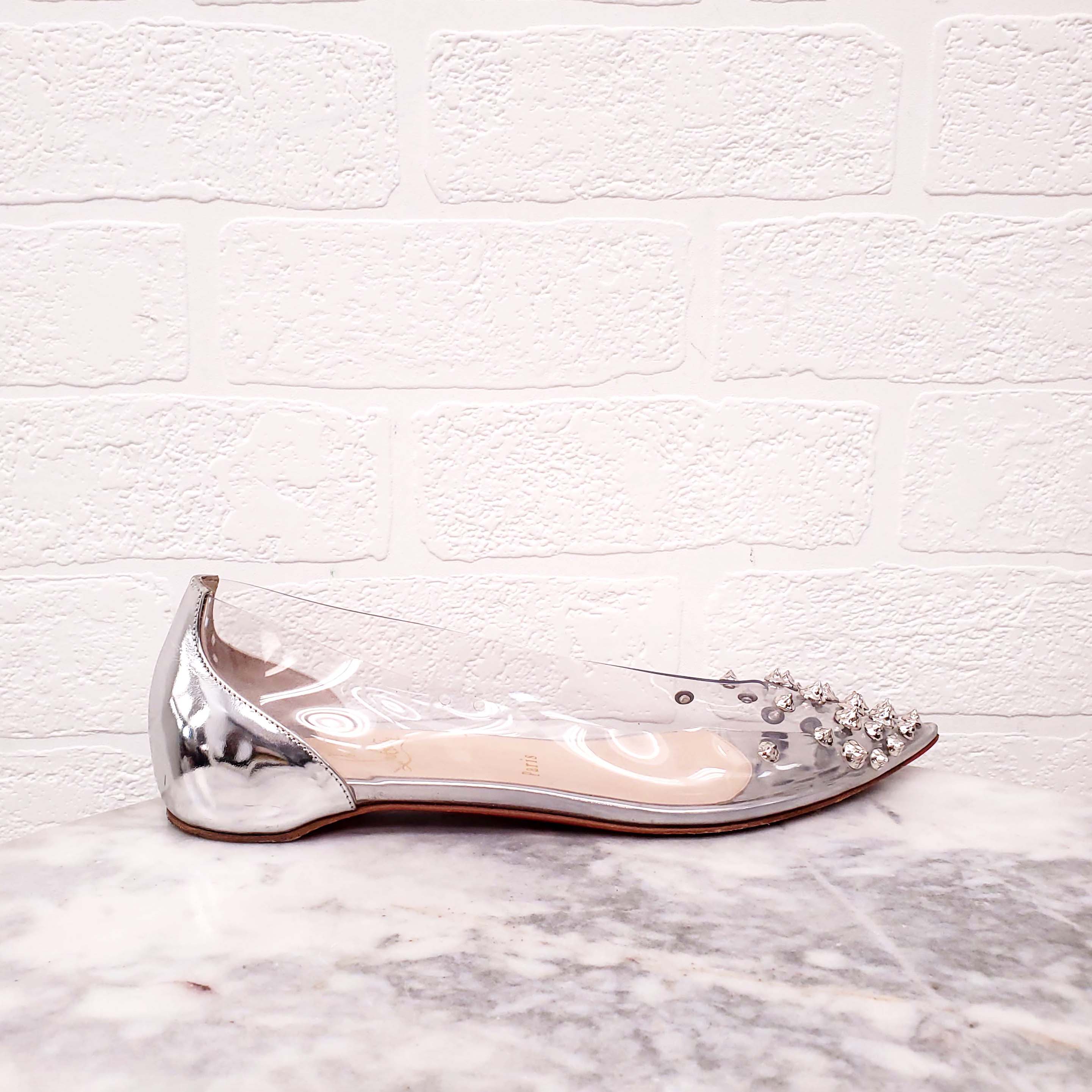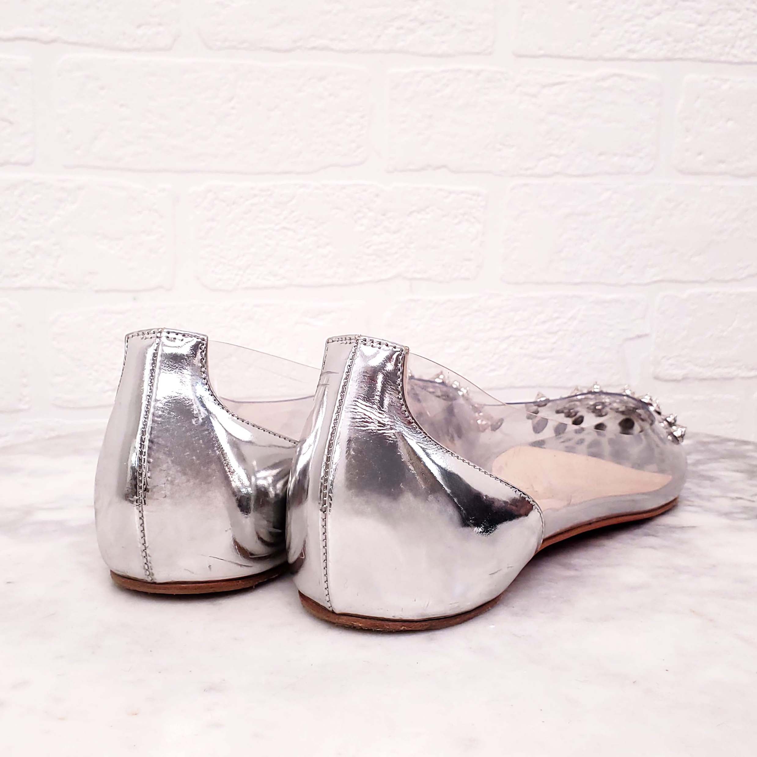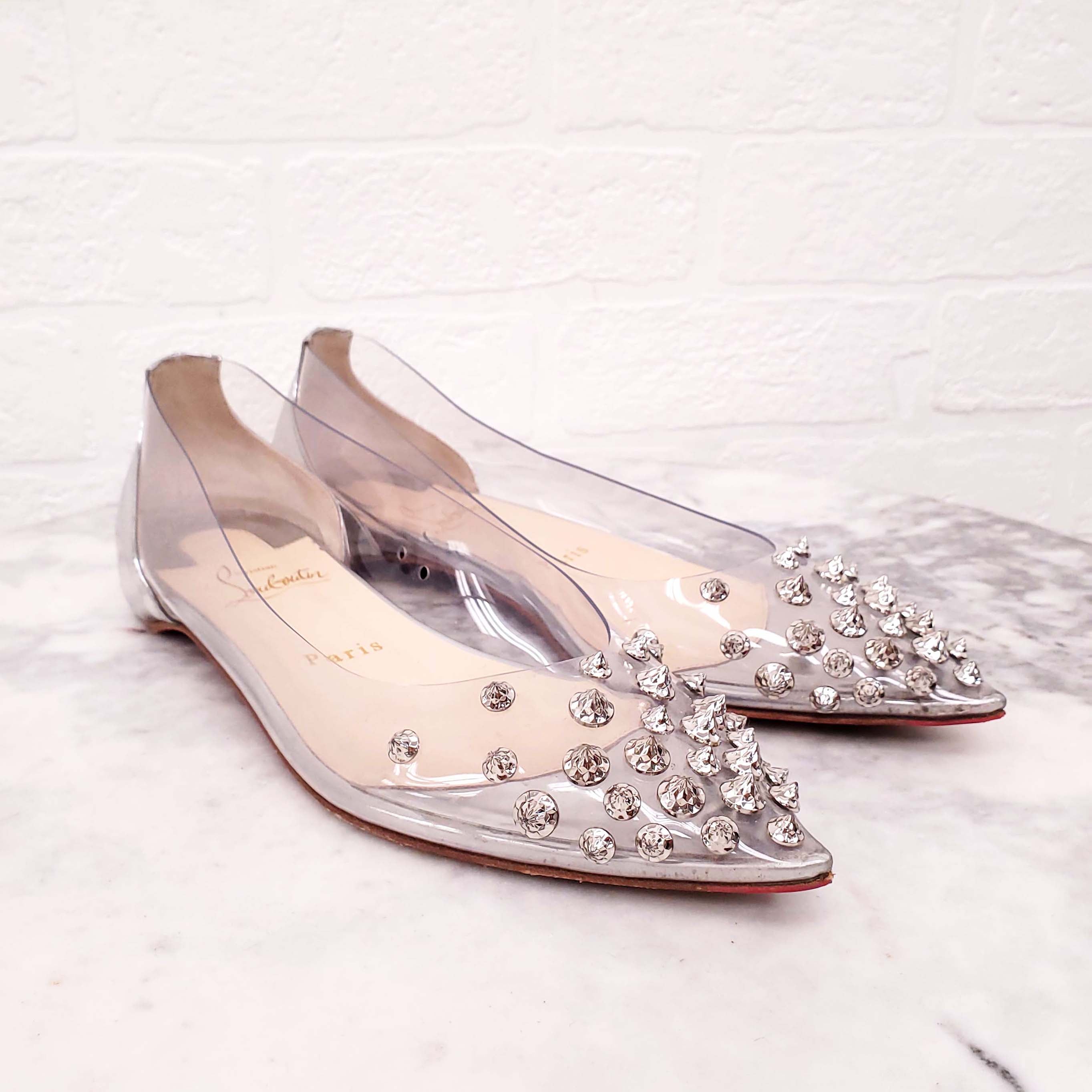 CHRISTIAN LOUBOUTIN LUCITE FLATS WITH STUD DETAIL - SIZE 37