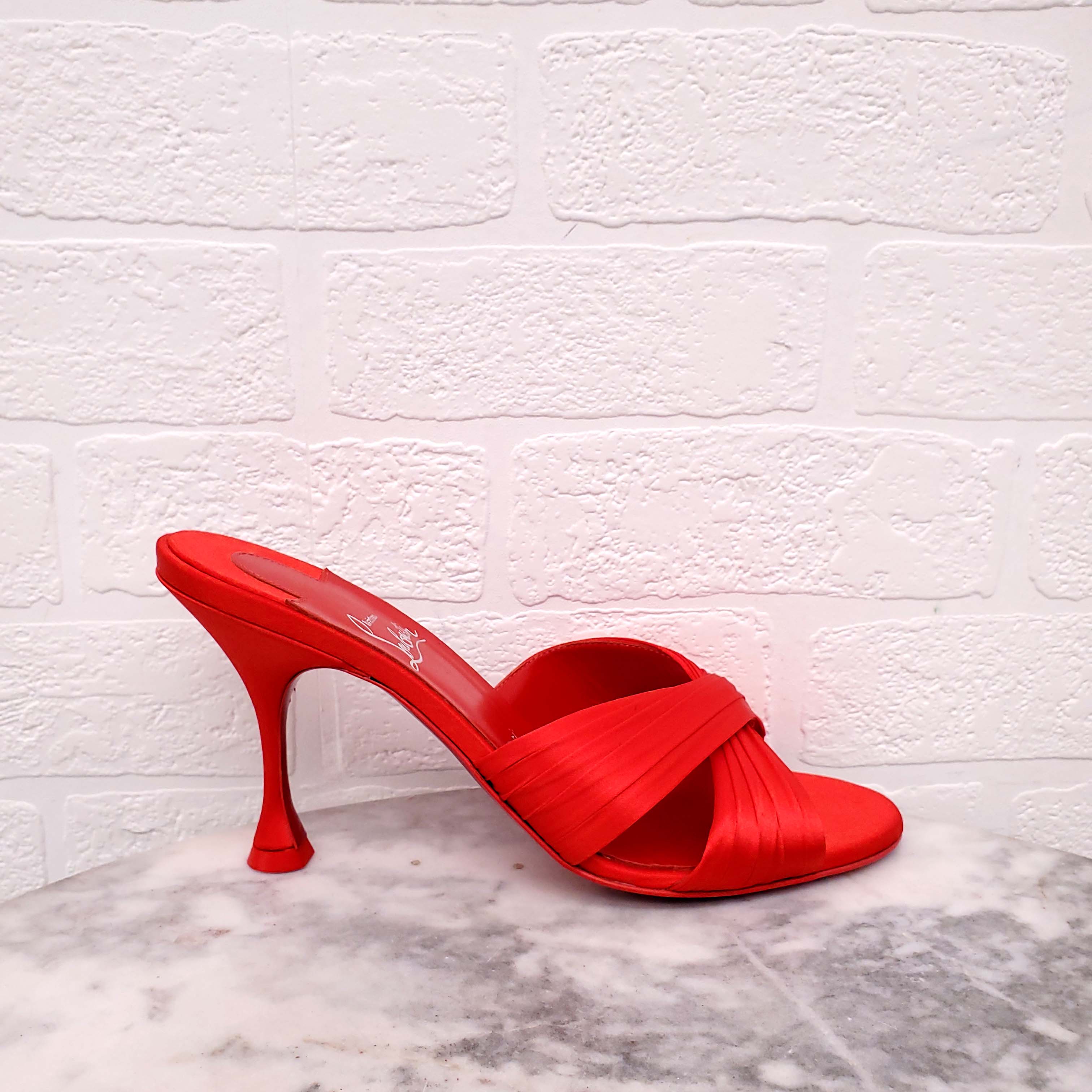 CHRISTIAN LOUBOUTIN RED SATIN SANDALS - SIZE 40