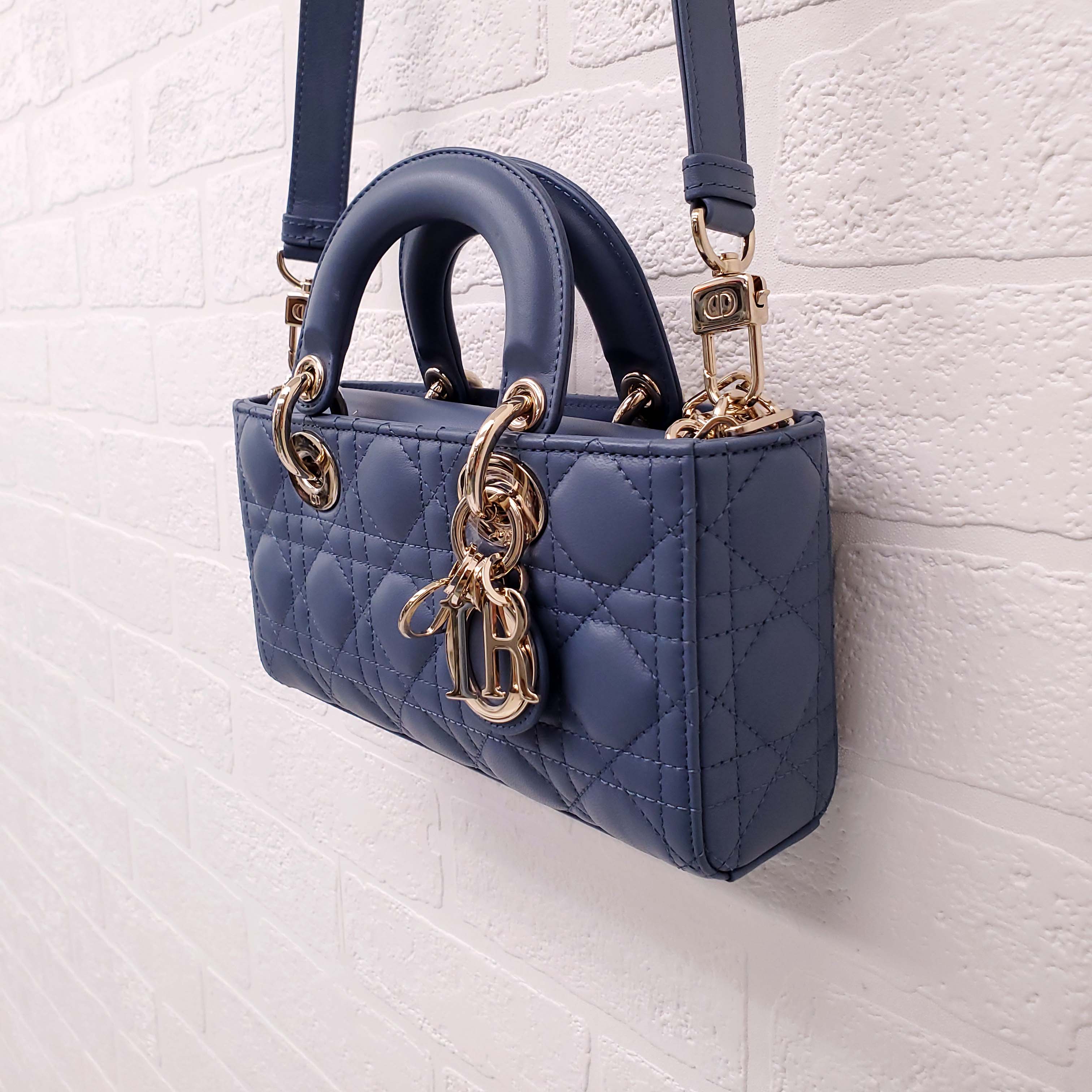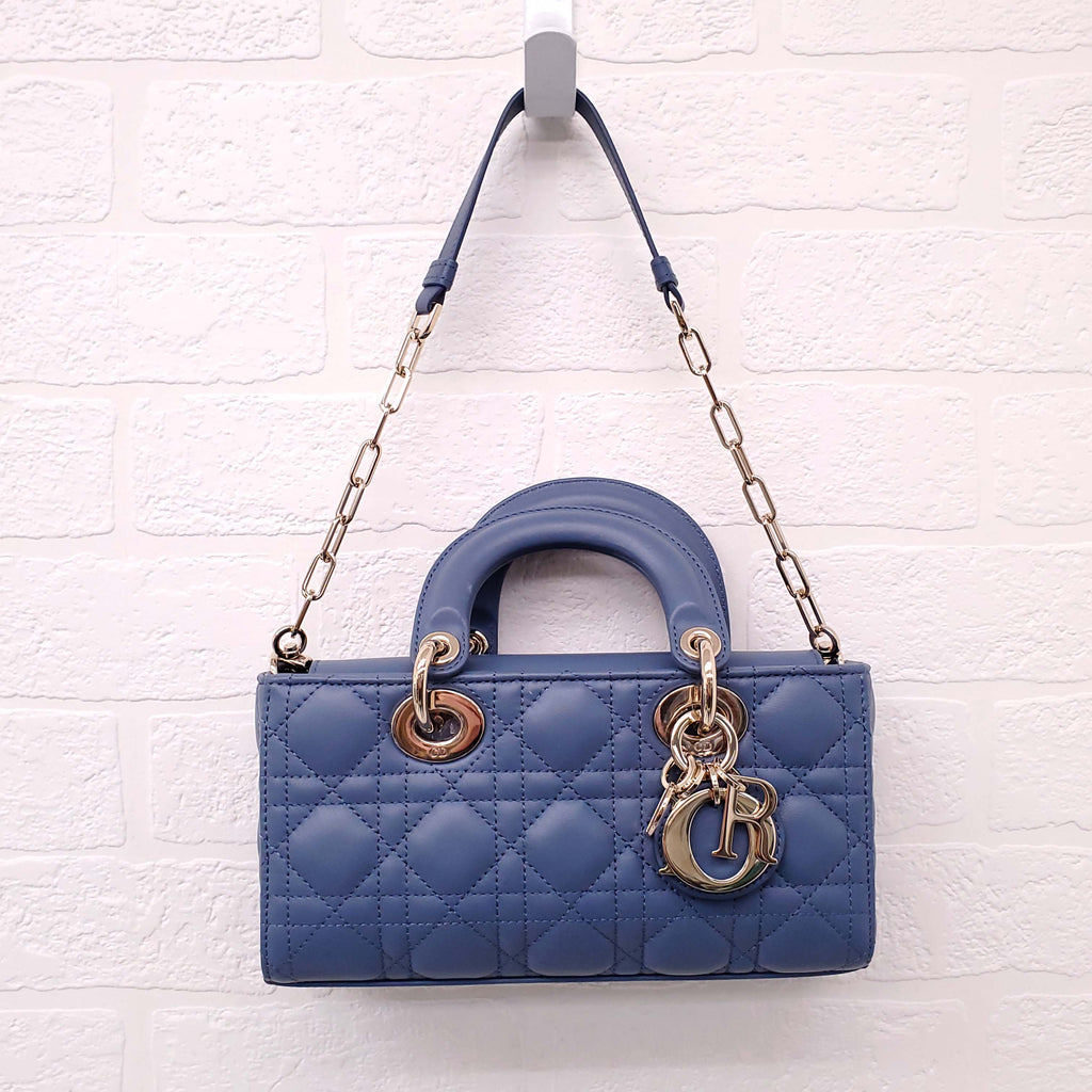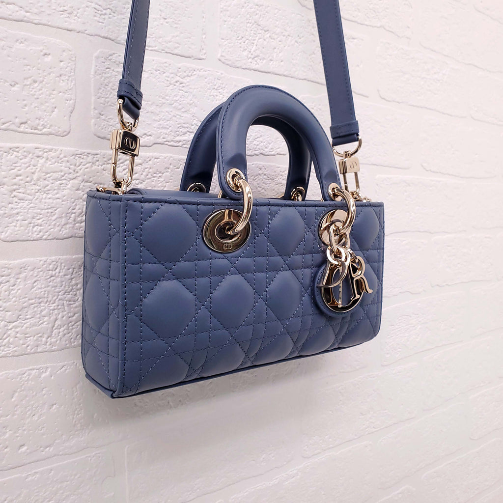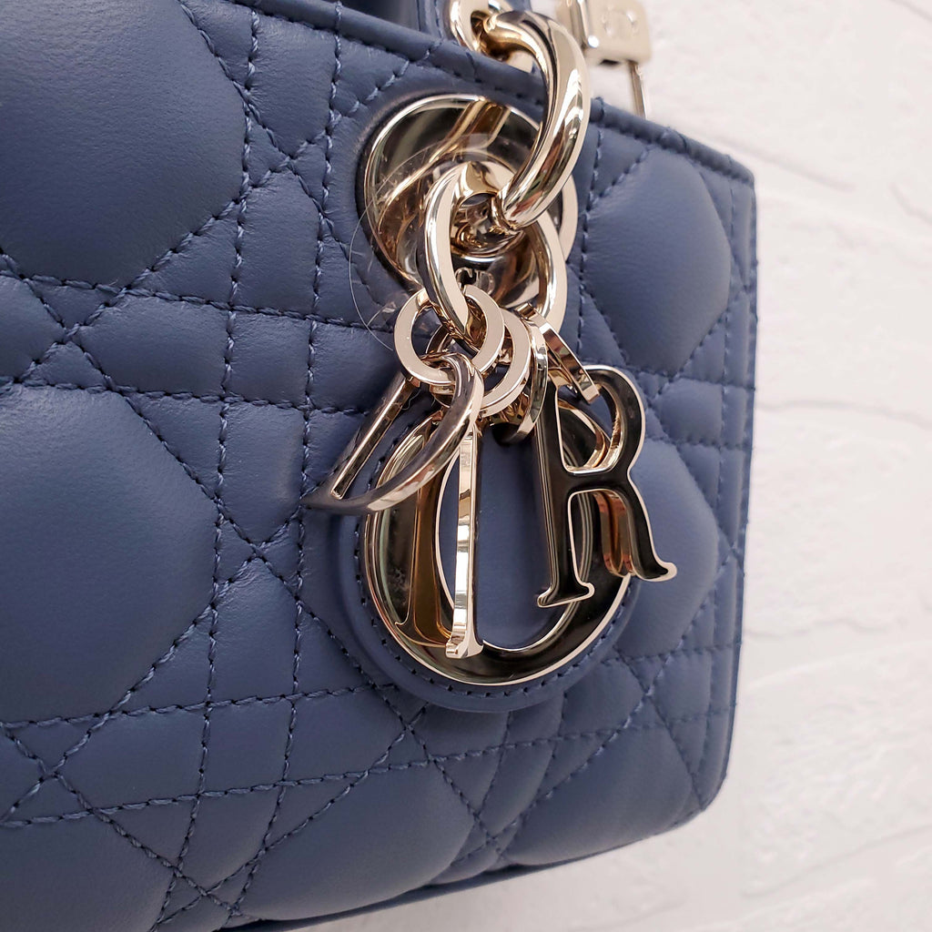 DIOR DENIM BLUE SMALL 'LADY D-JOU' CANNAGE BAG
