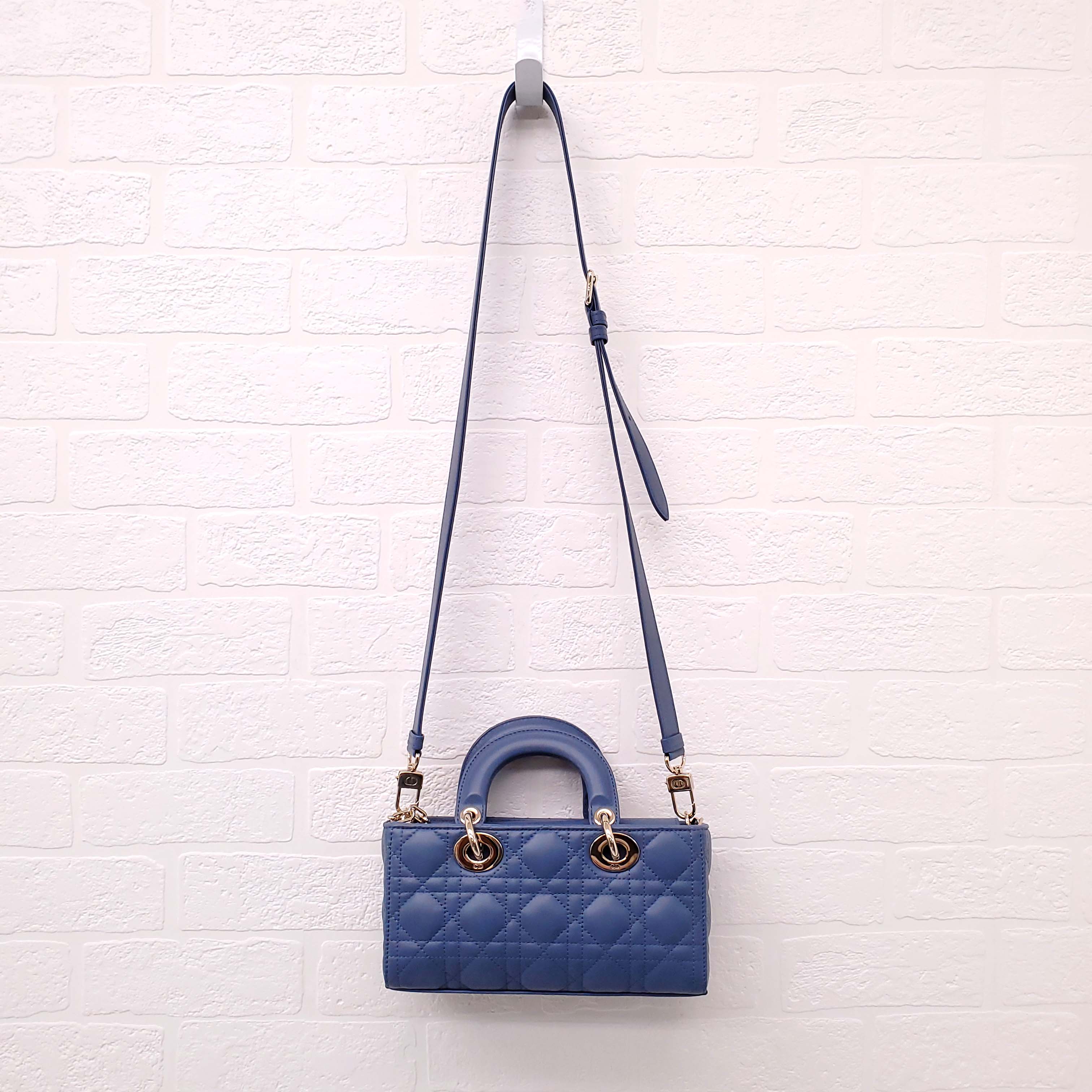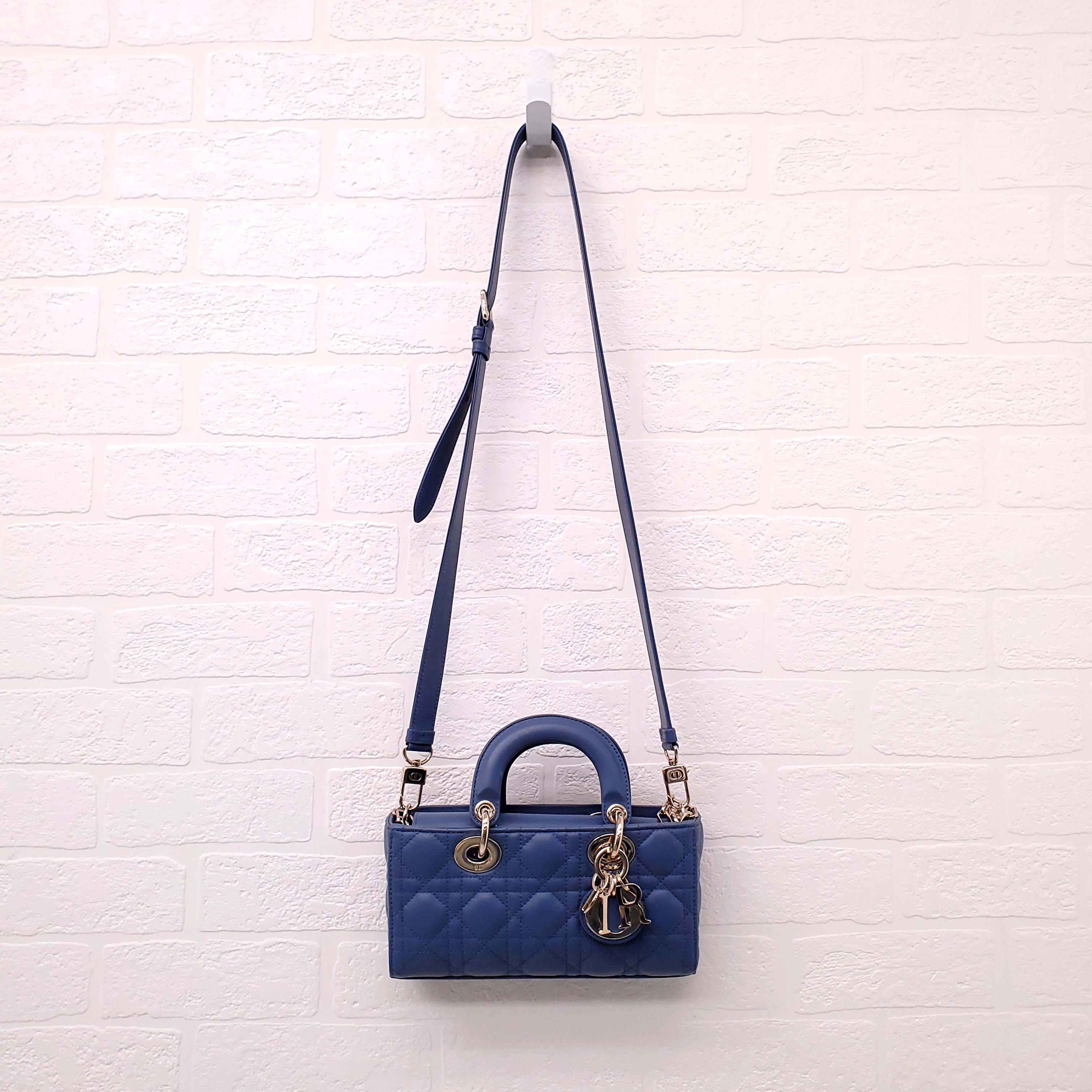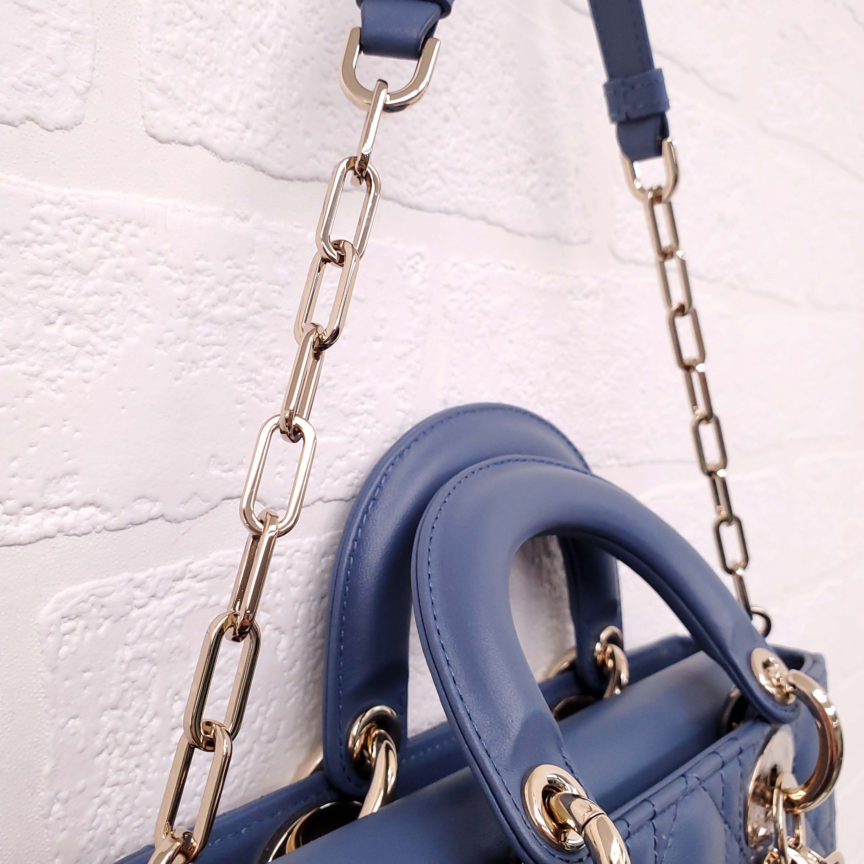 DIOR DENIM BLUE SMALL 'LADY D-JOU' CANNAGE BAG