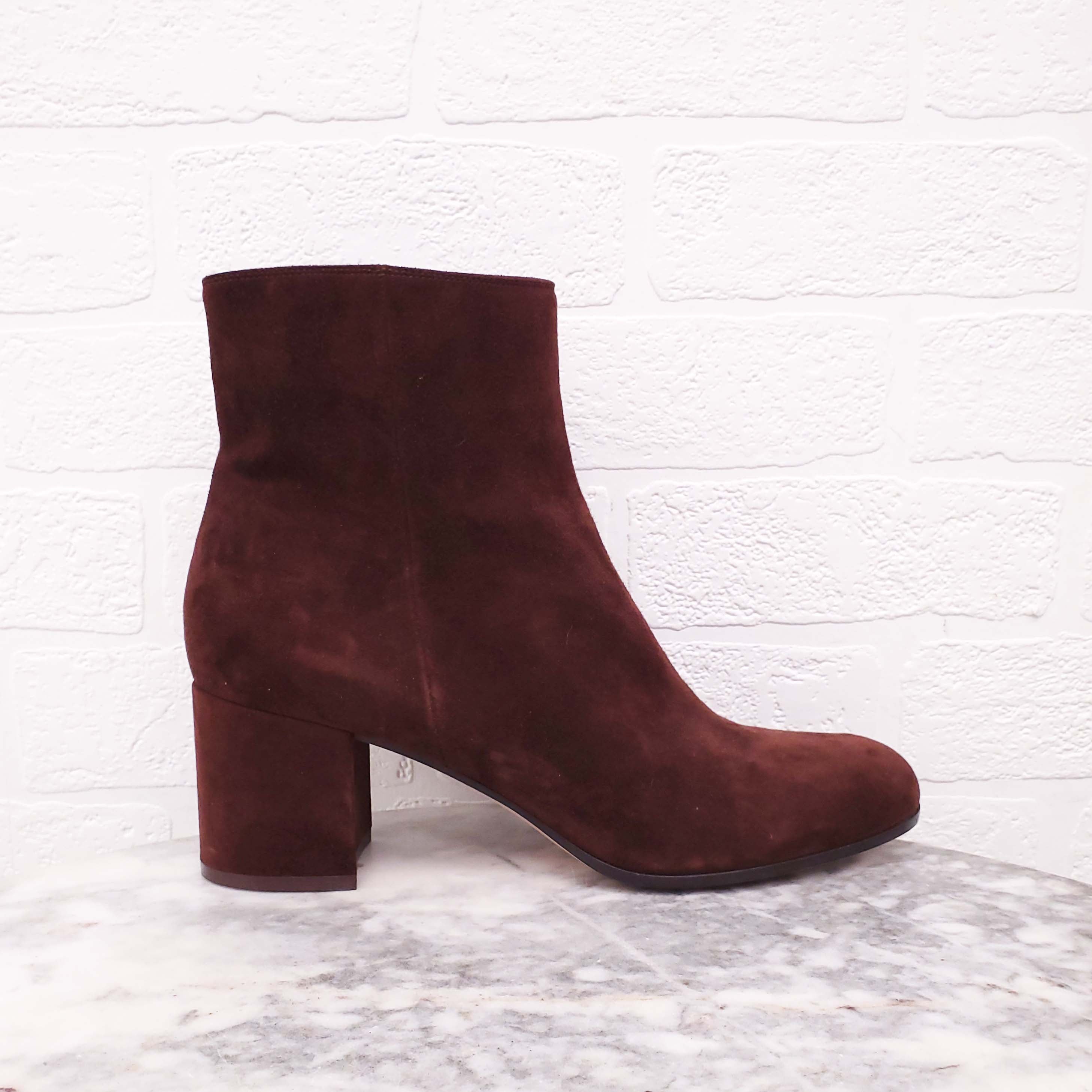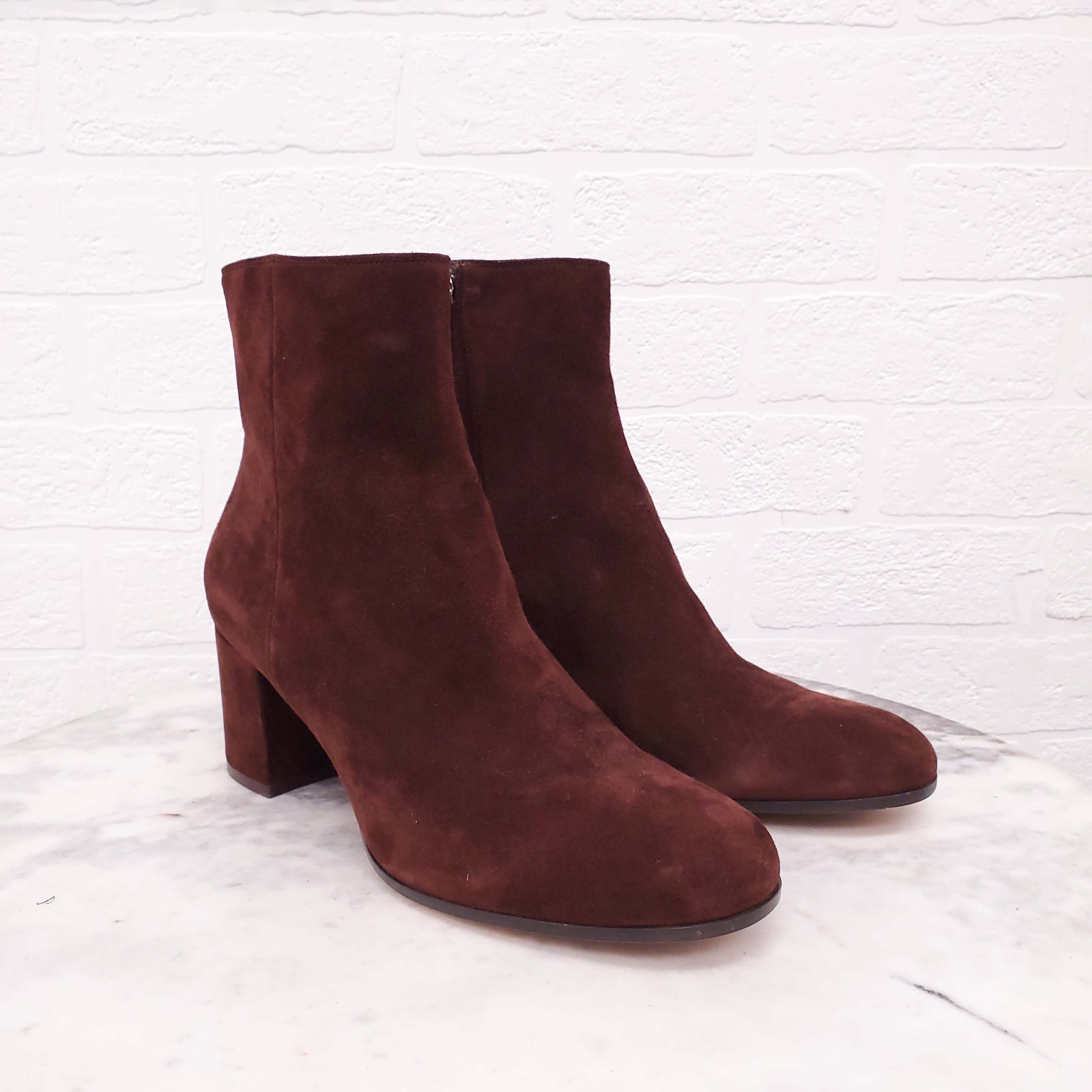 GIANVITO ROSSI BROWN SUEDE BLOCK HEEL BOOTIES - SIZE 40
