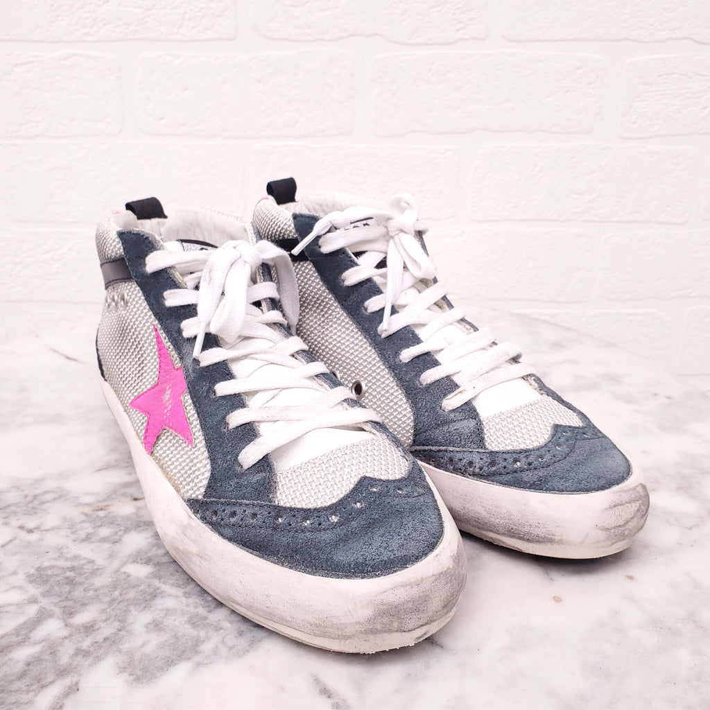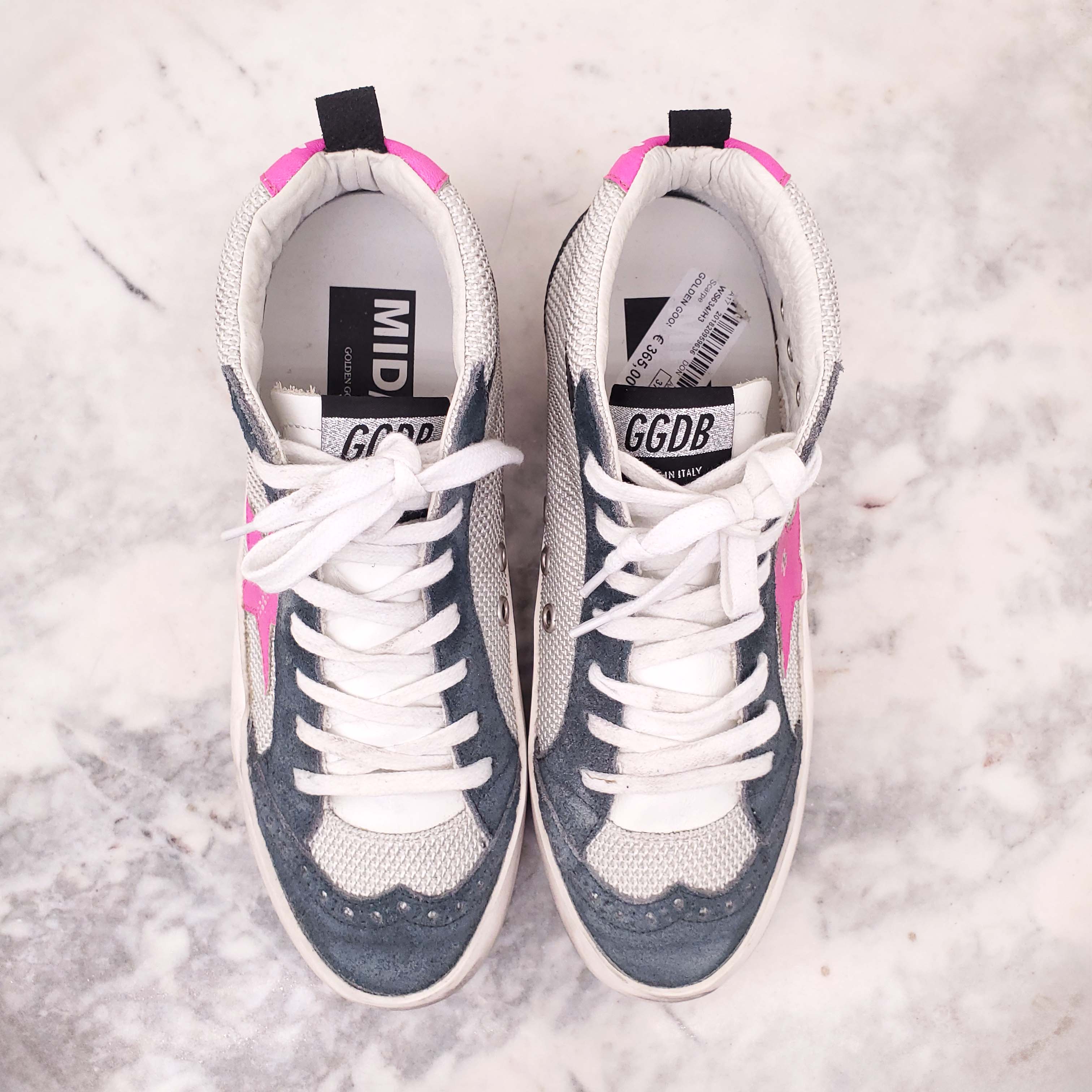 GOLDEN GOOSE NAVY AND PINK 'MIDSTAR' SNEAKERS - SIZE 37