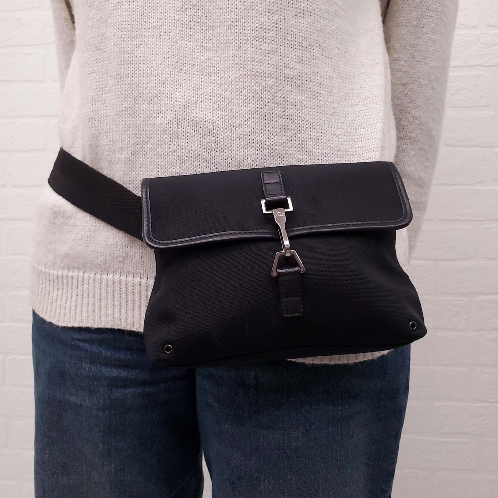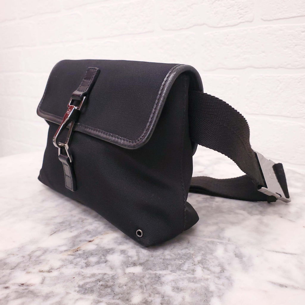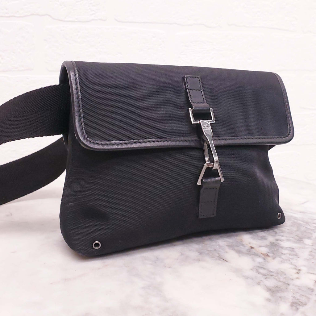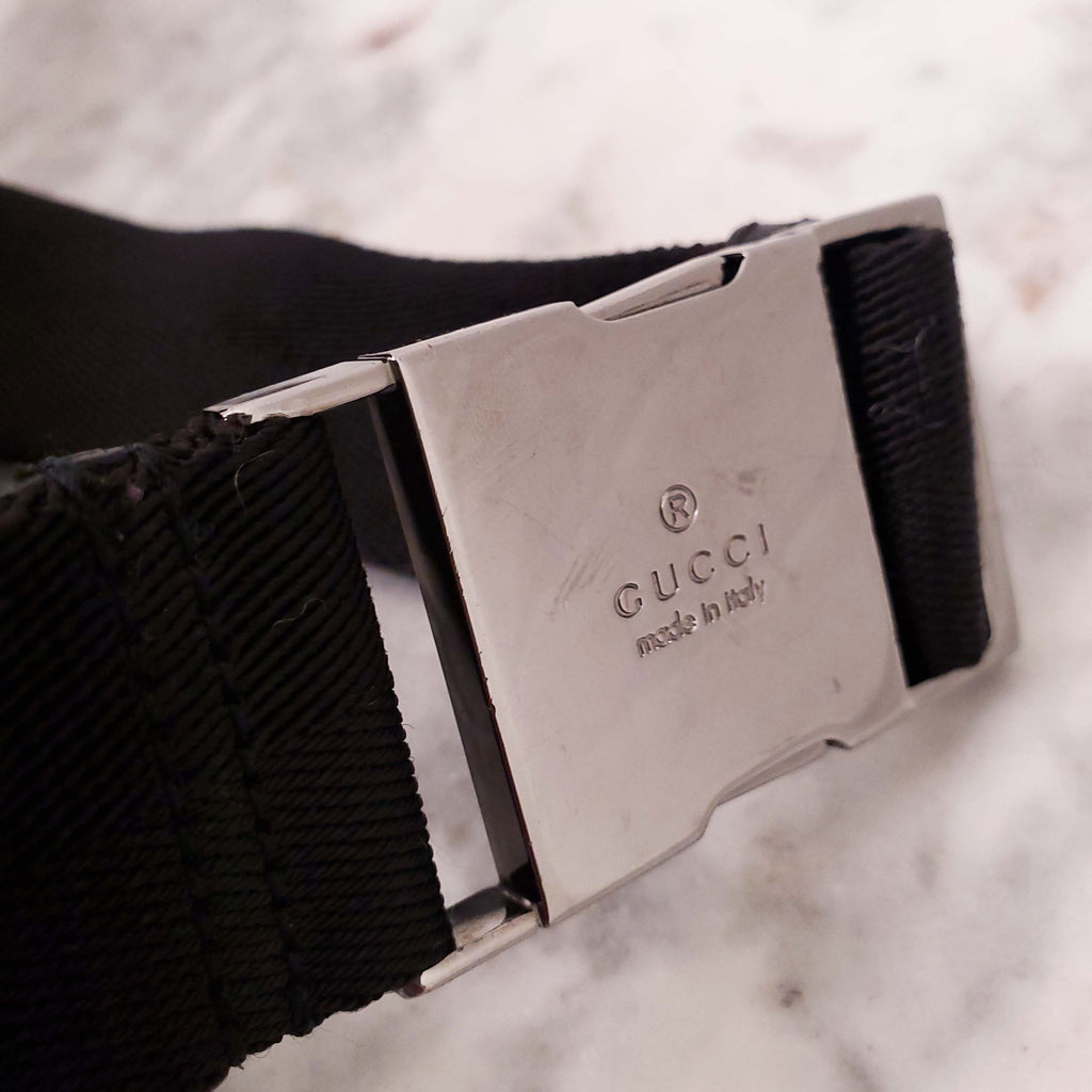 GUCCI BLACK BELT BAG WITH SILVER CLASP