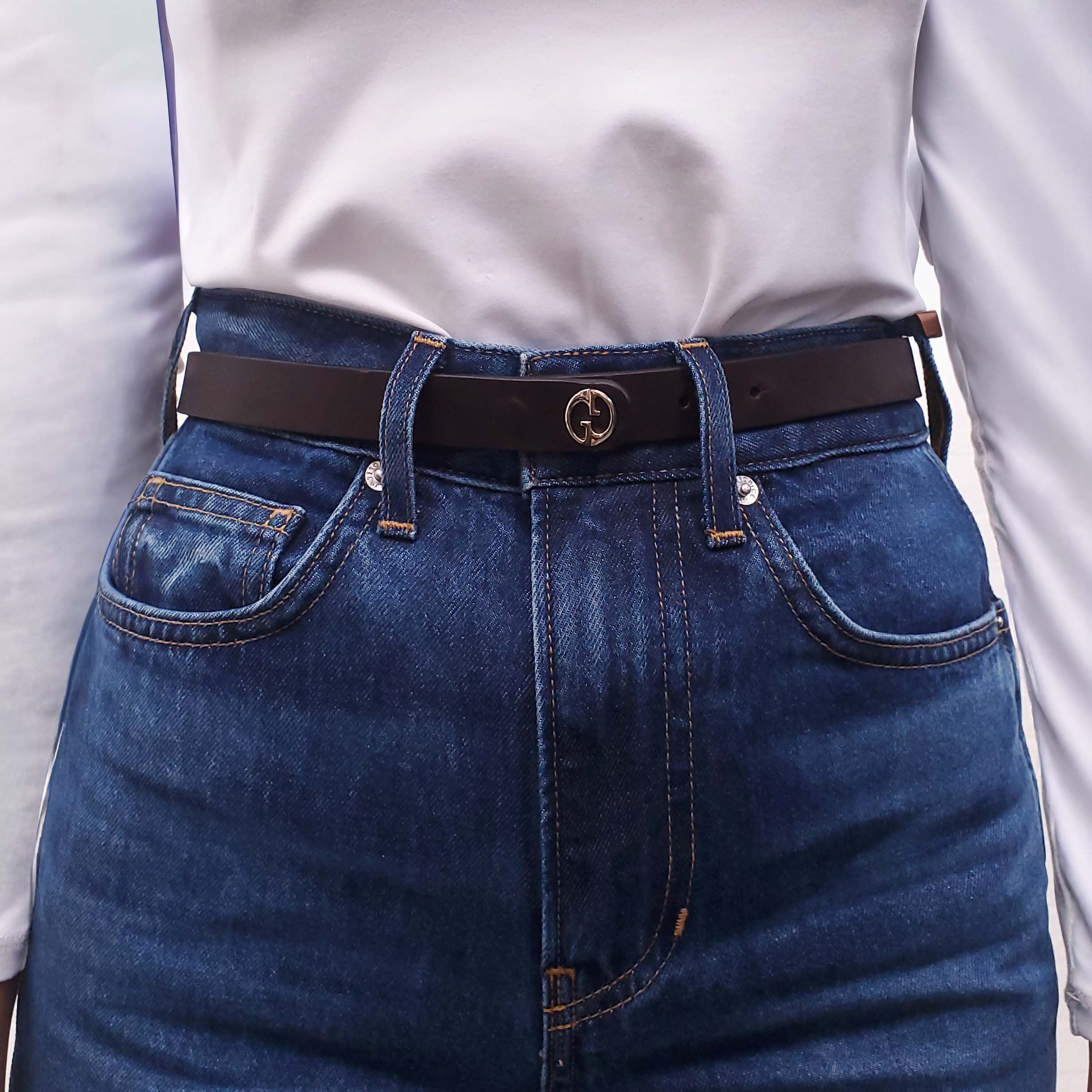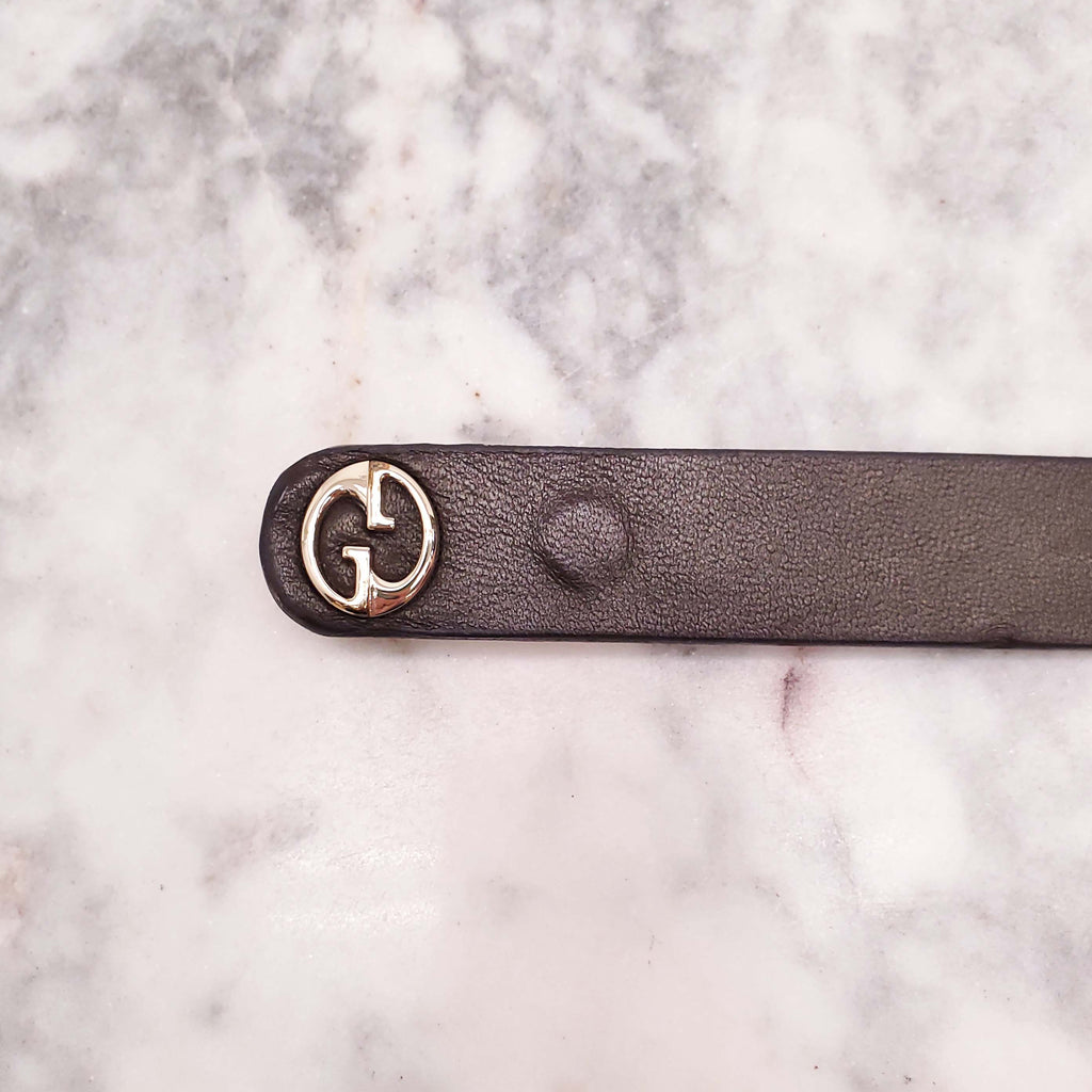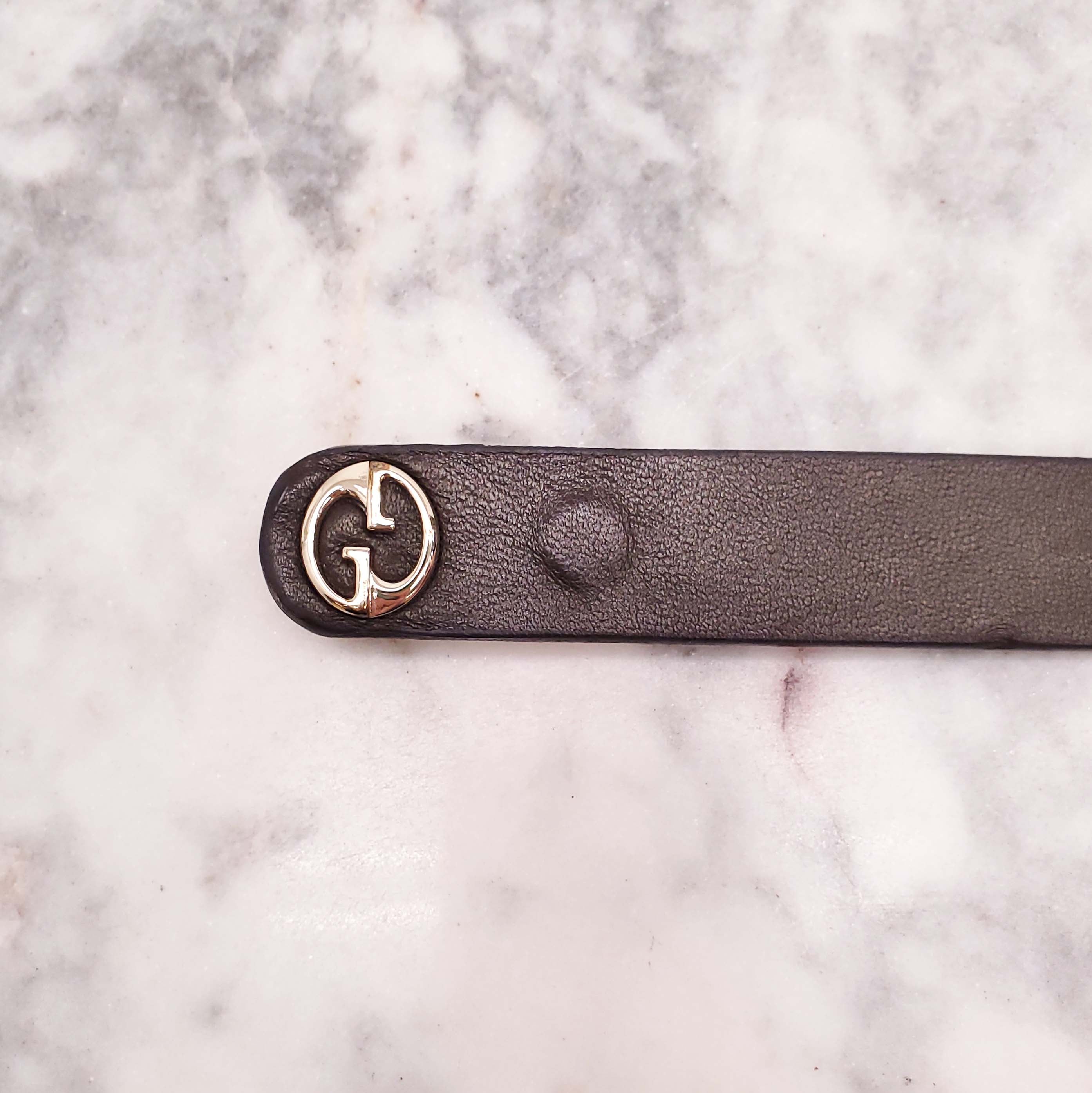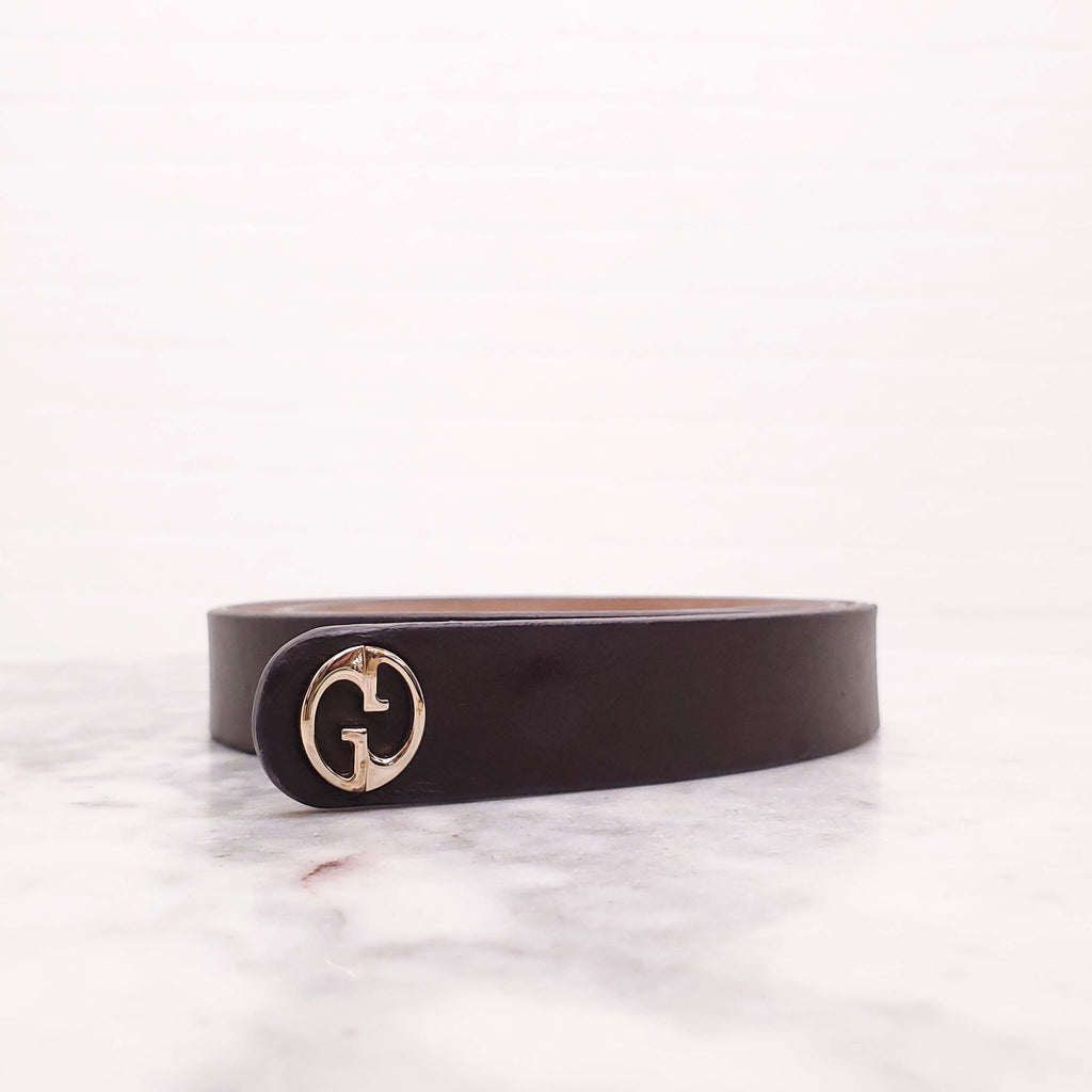GUCCI BROWN LEATHER THIN LOGO BELT - SIZE XS