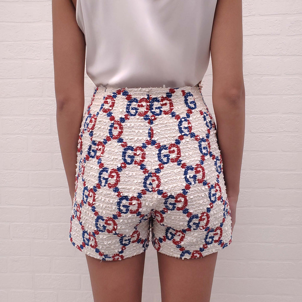 GUCCI CREAM TWEED MONOGRAM SHORTS - SIZE 38