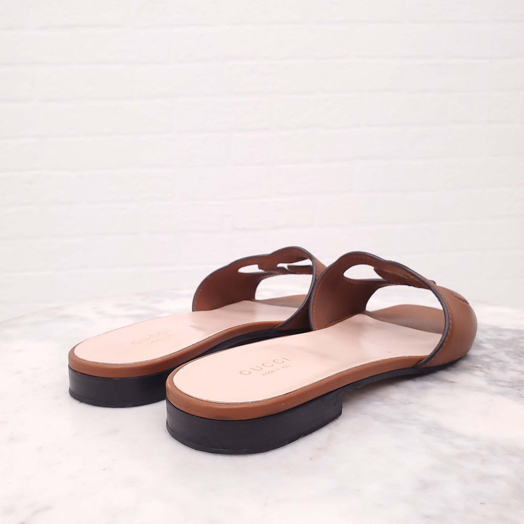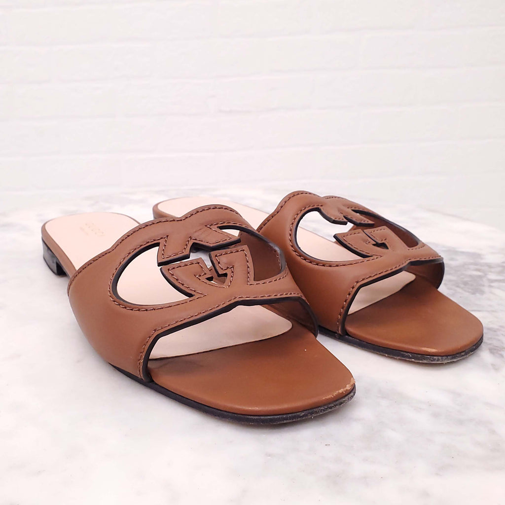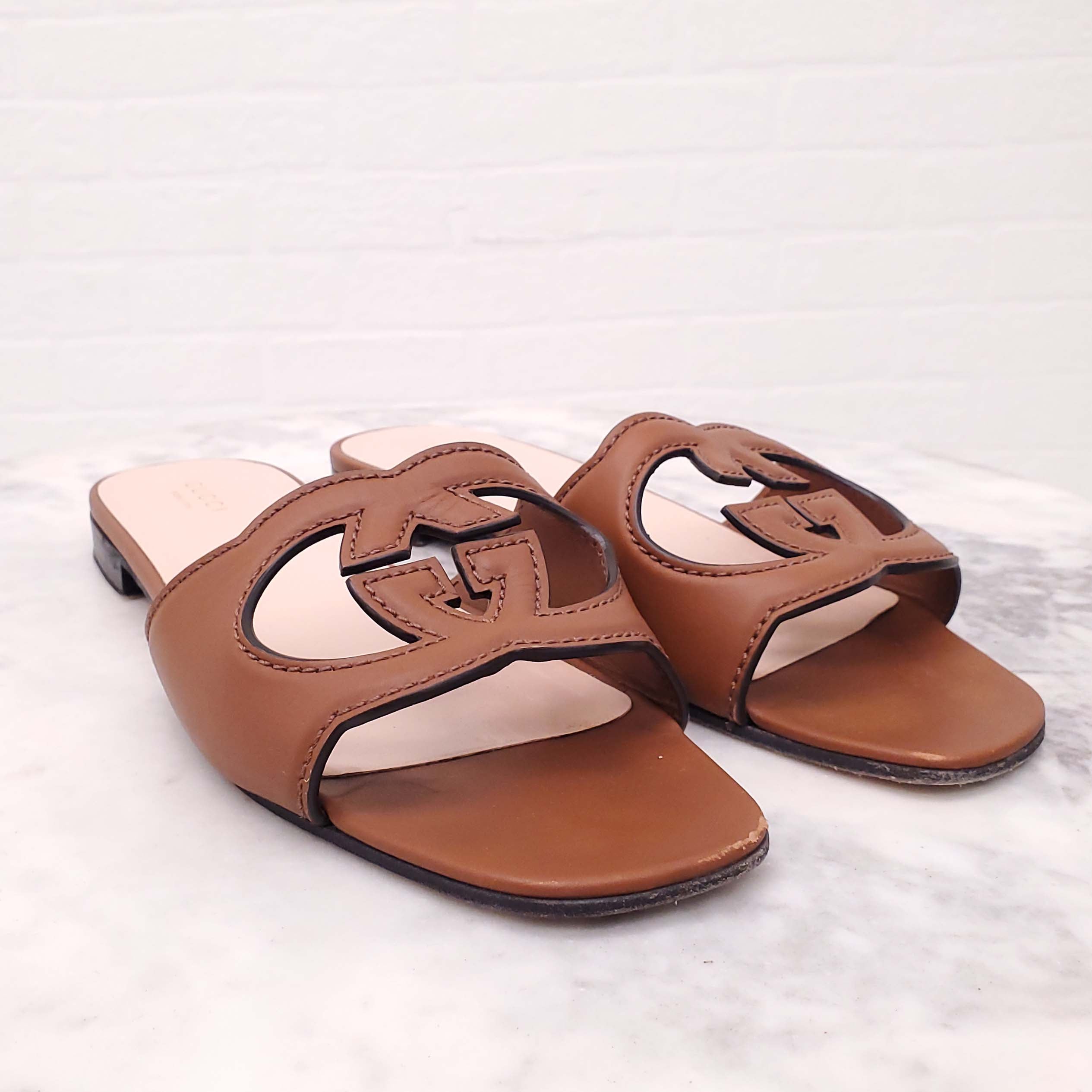 GUCCI INTERLOCKING G LEATHER SANDALS - SIZE 39