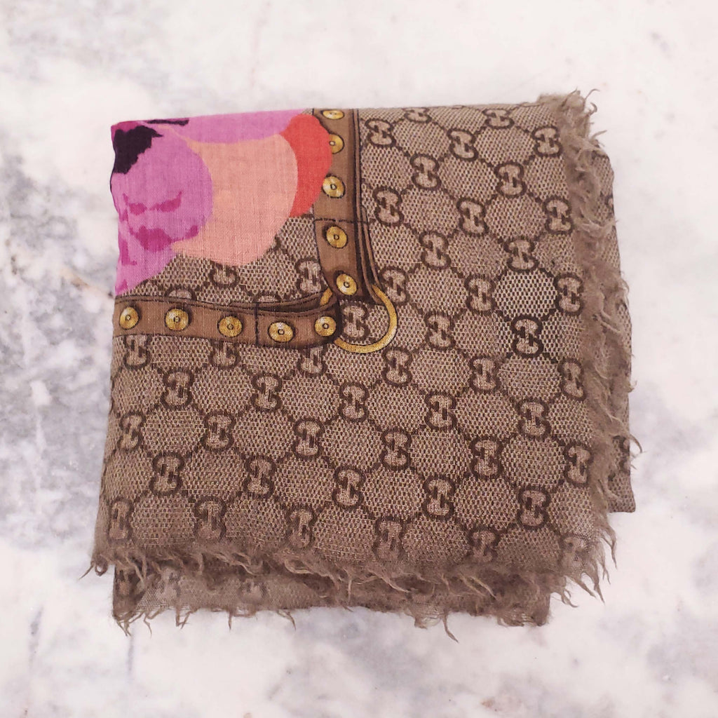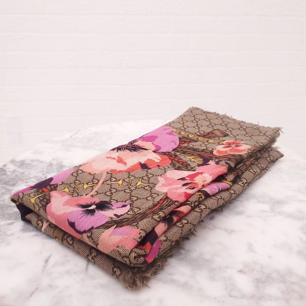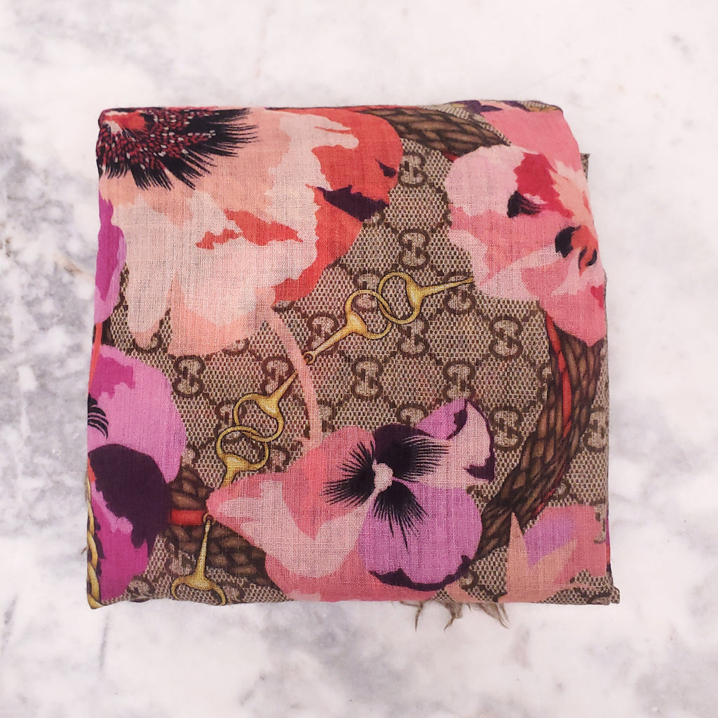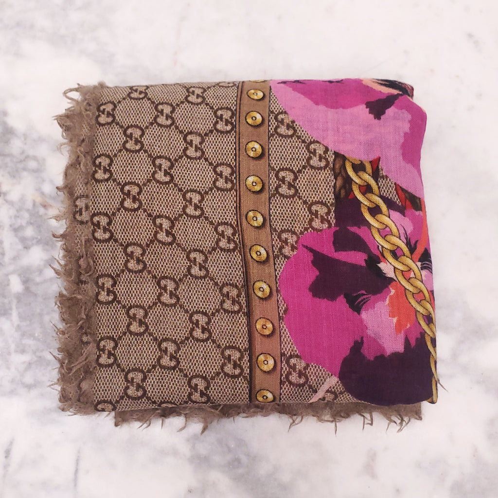 GUCCI LOGO SCARF WITH FLORAL PRINT