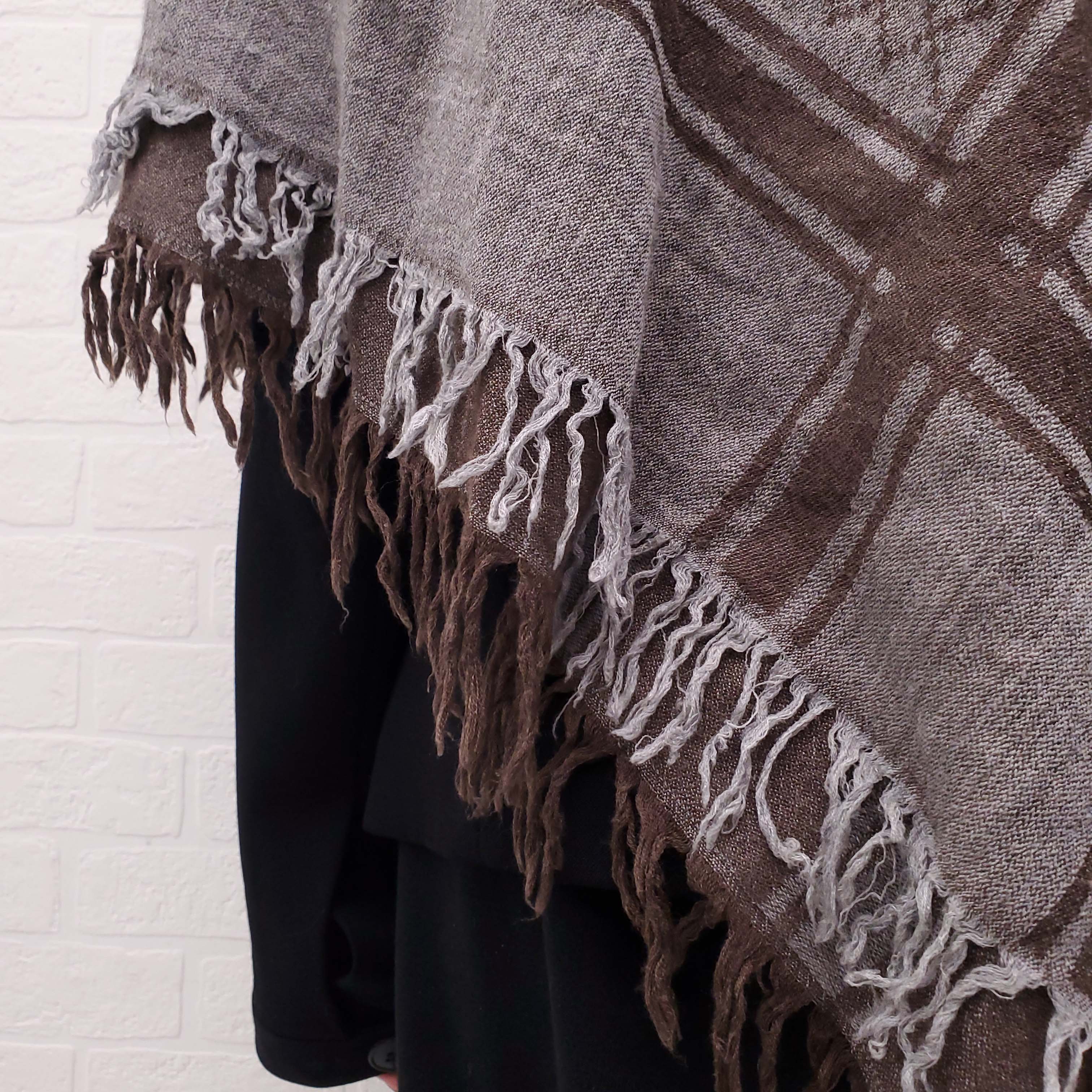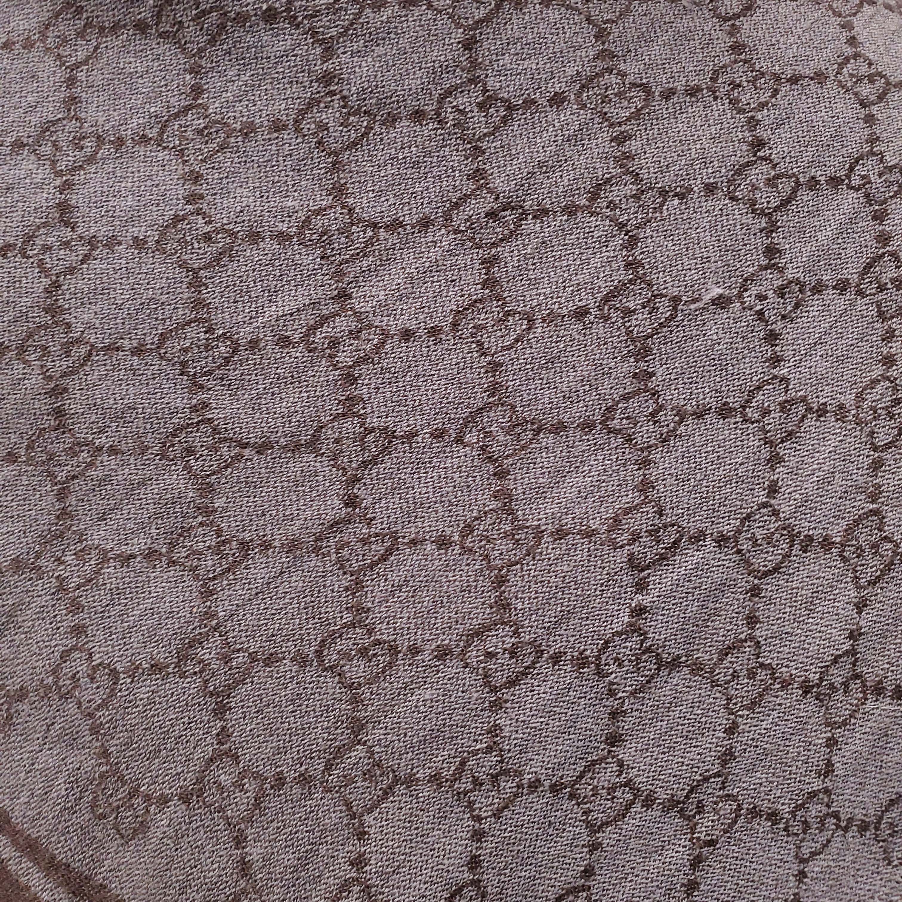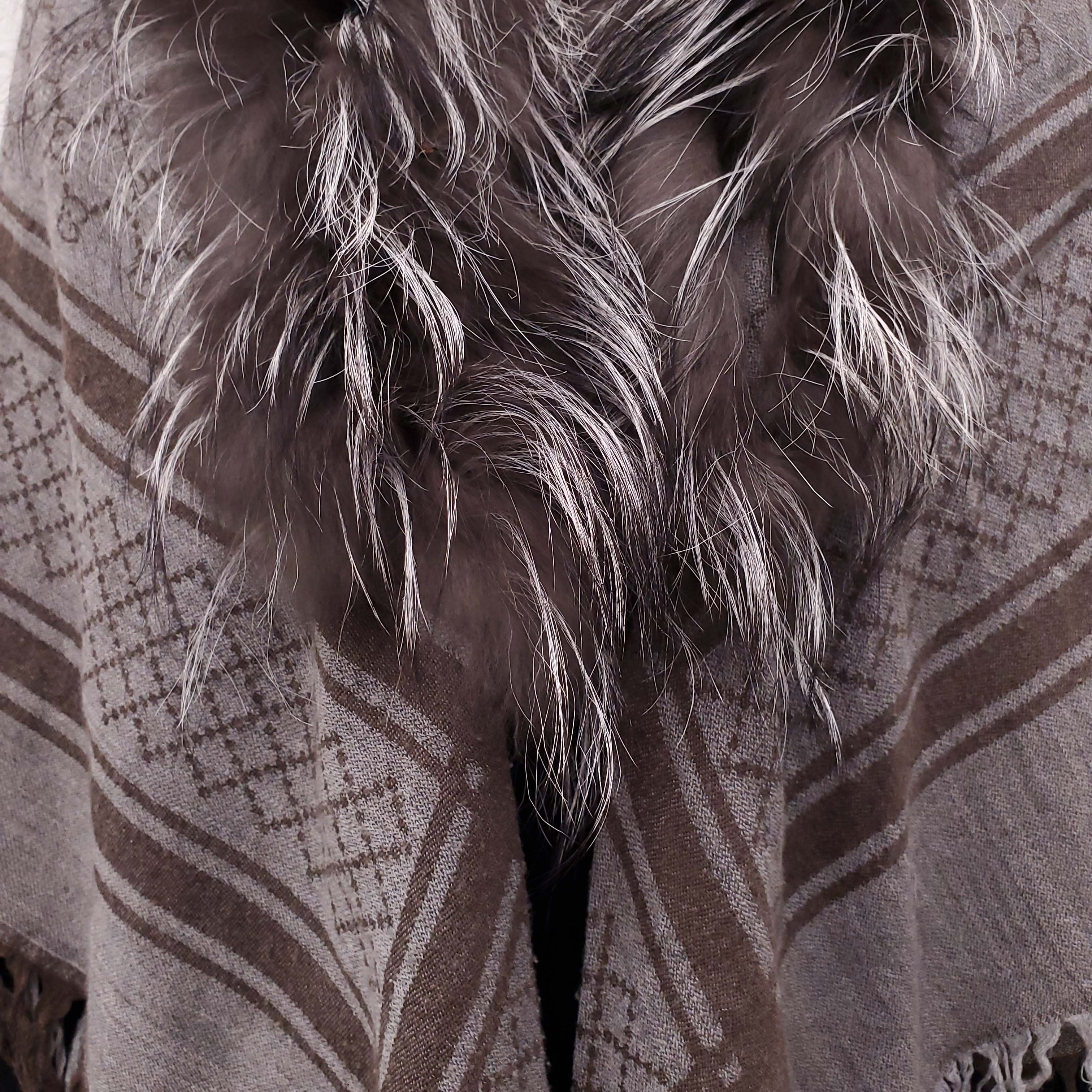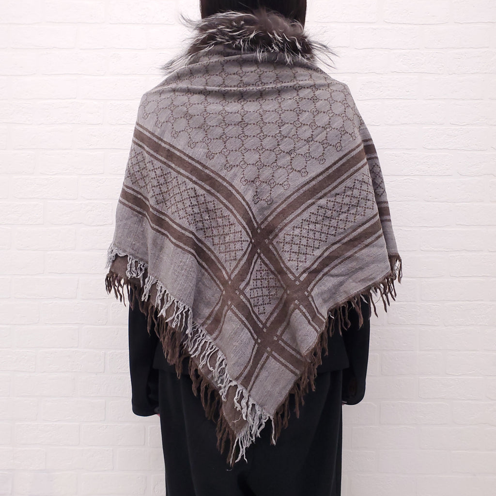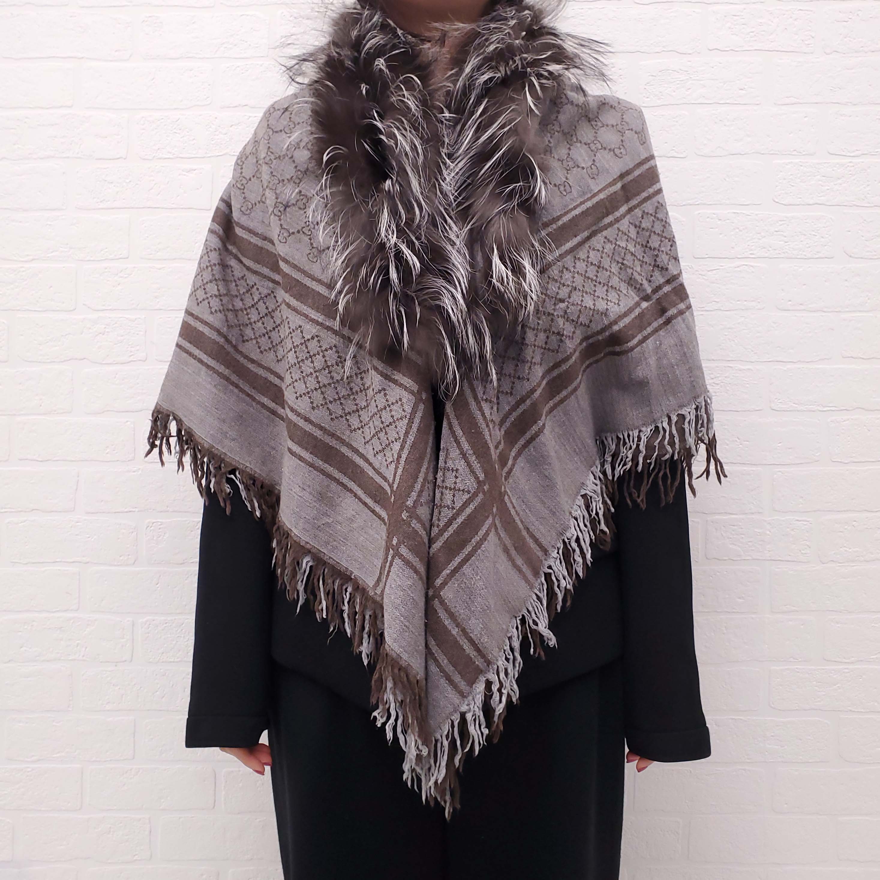 GUCCI TAUPE AND BROWN LOGO SCARF WITH FOX FUR