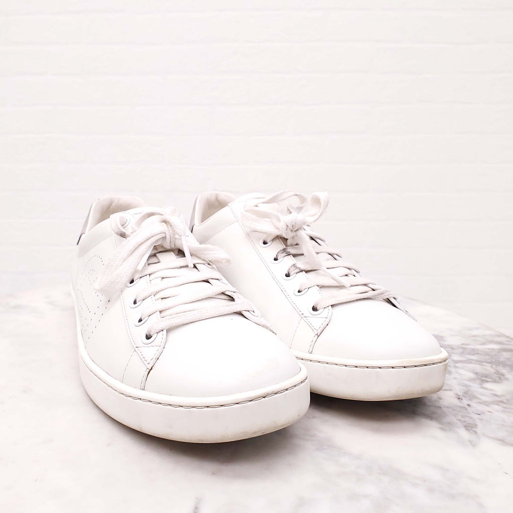 GUCCI WHITE PERFORATED LOGO SNEAKERS - SIZE 42