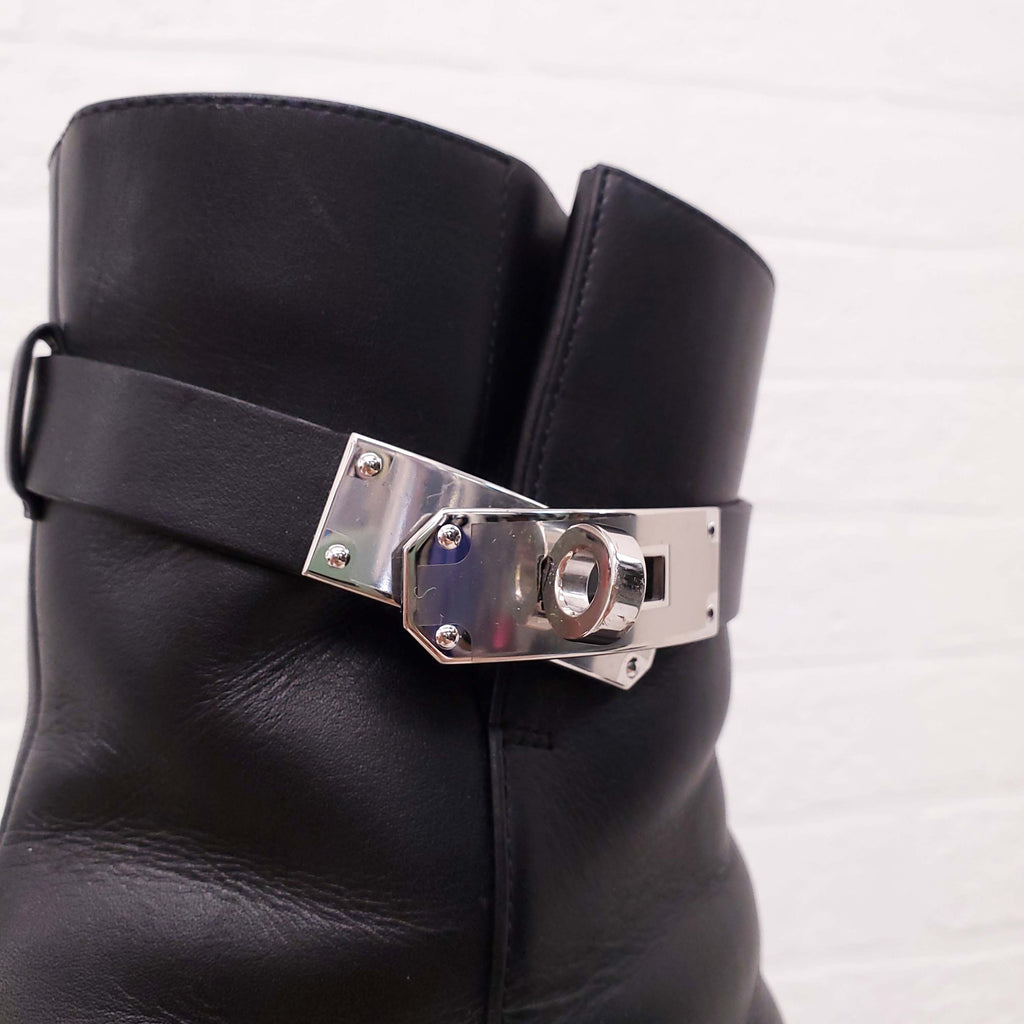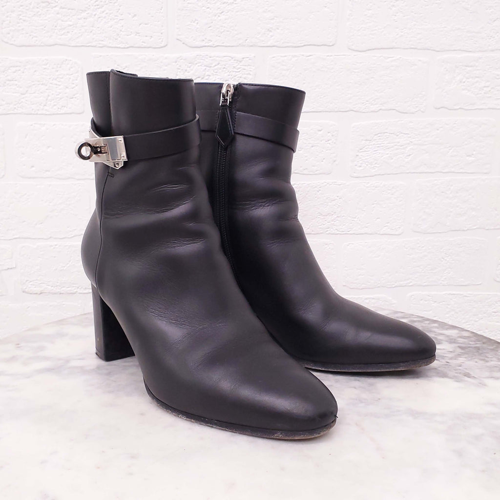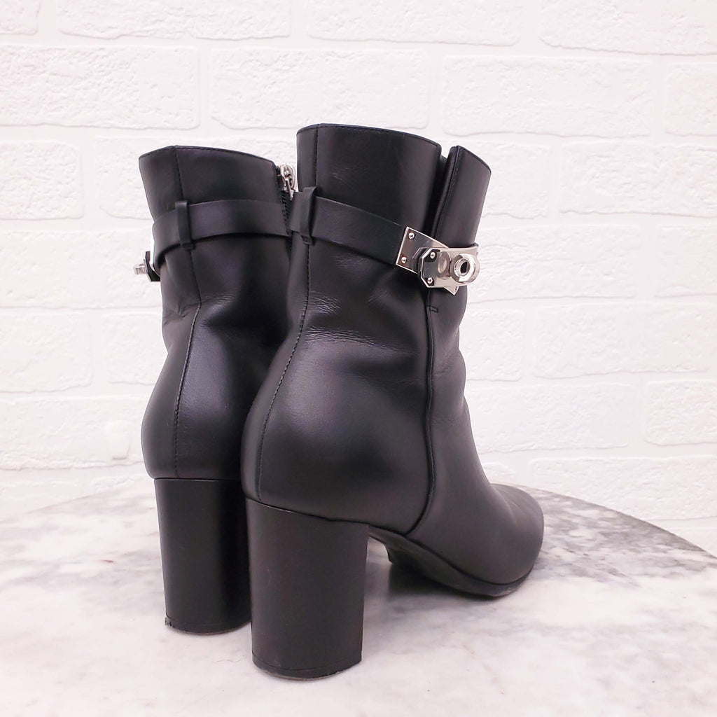 HERMÈS BLACK LEATHER 'SAINT GERMAIN' ANKLE BOOTS - SIZE 36.5