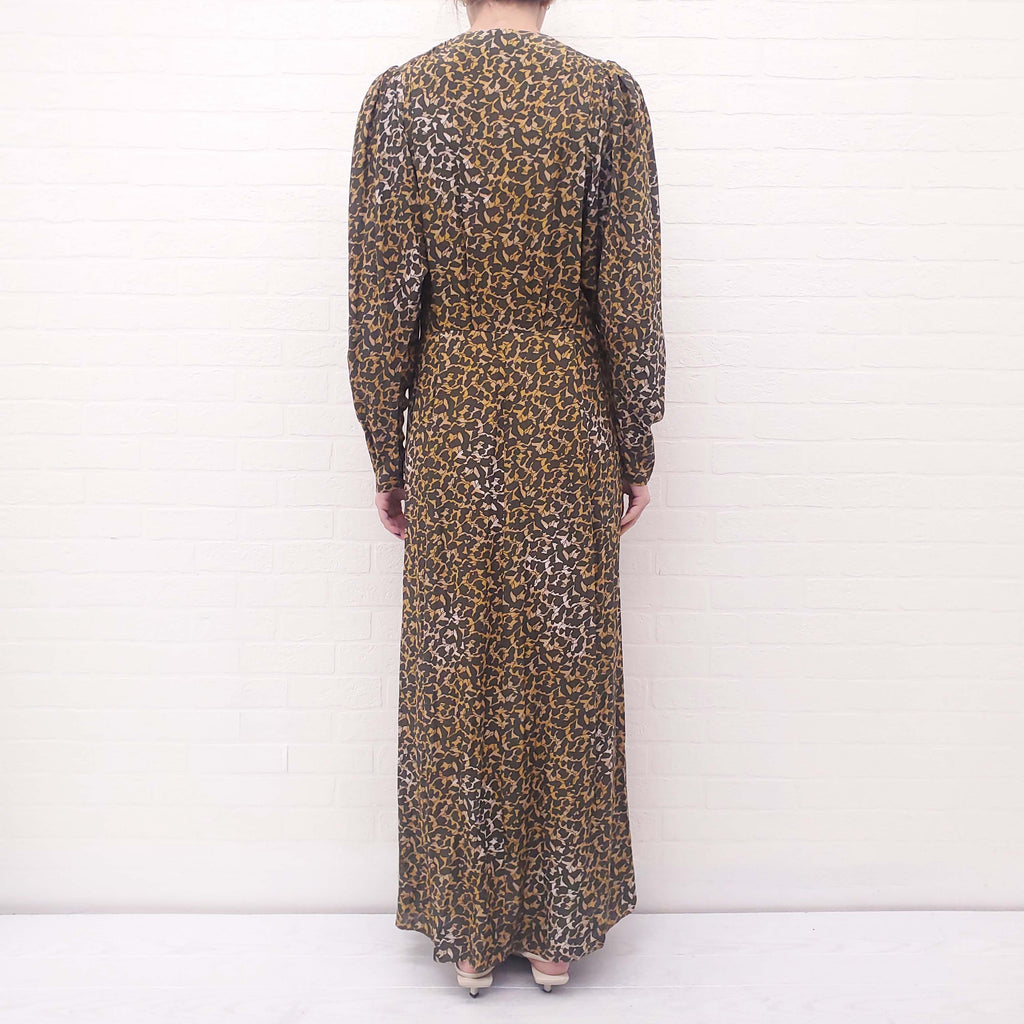 ISABEL MARANT ÉTOILE LEOPARD EFFECT LONG SLEEVE PLEATED DRESS - SIZE 36