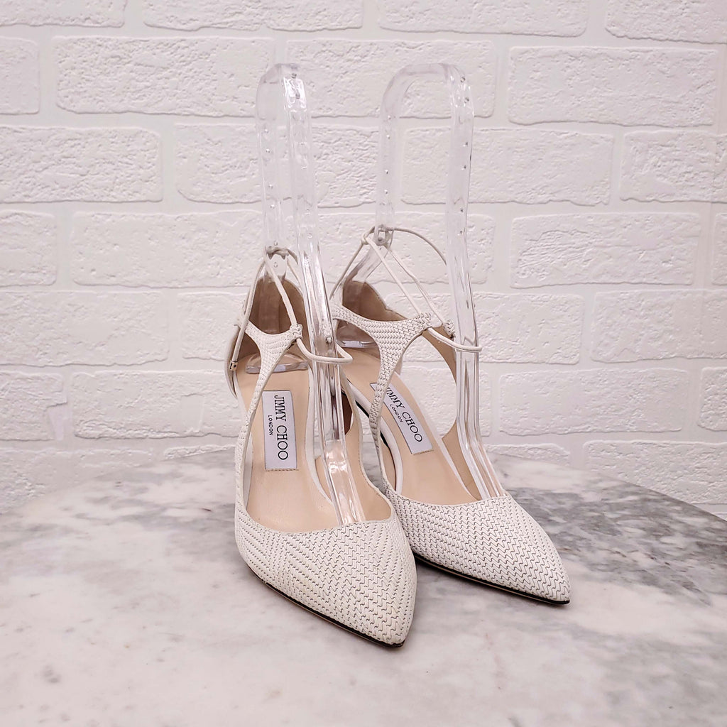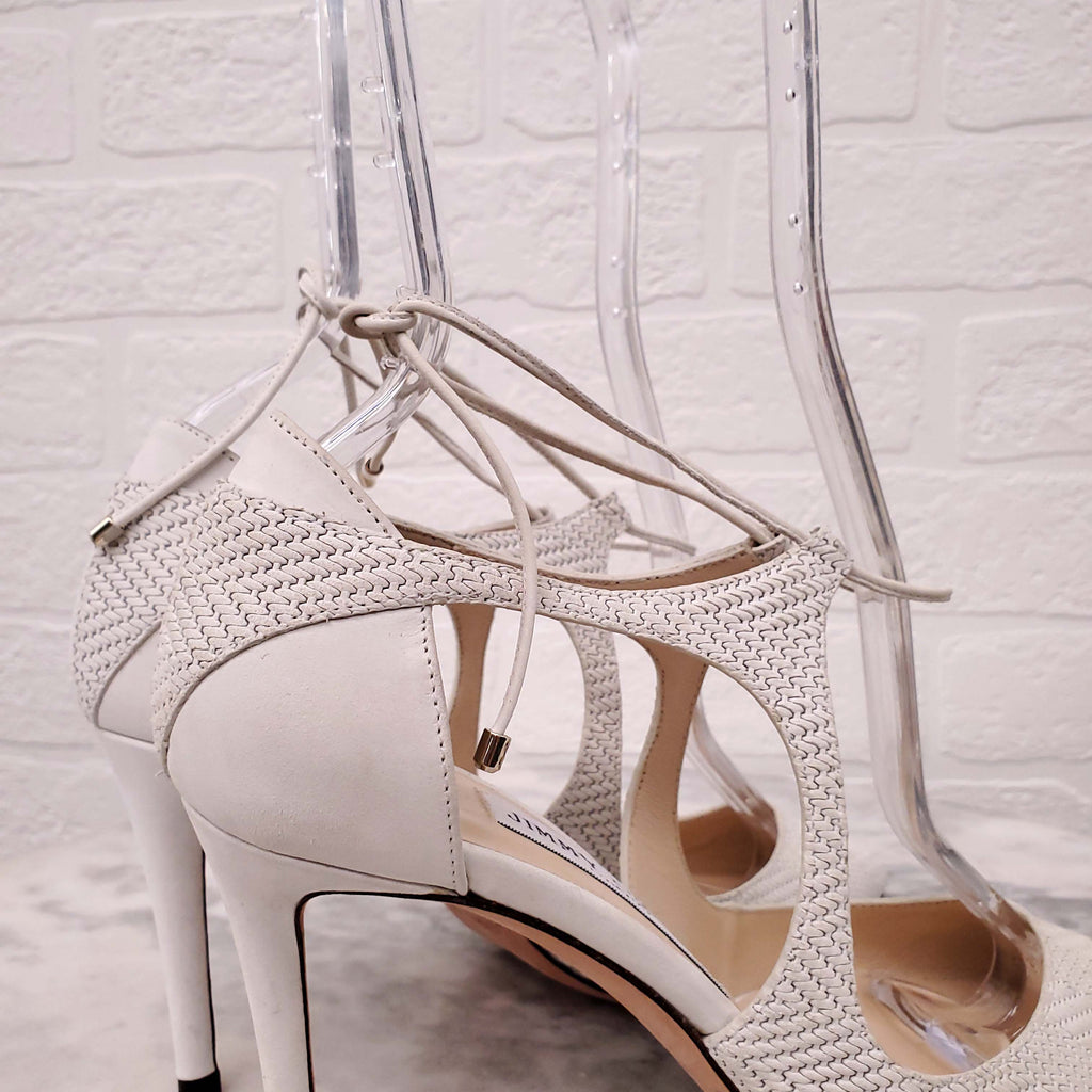 JIMMY CHOO OFF-WHITE PATTERNED SUEDE HEELS - SIZE 36