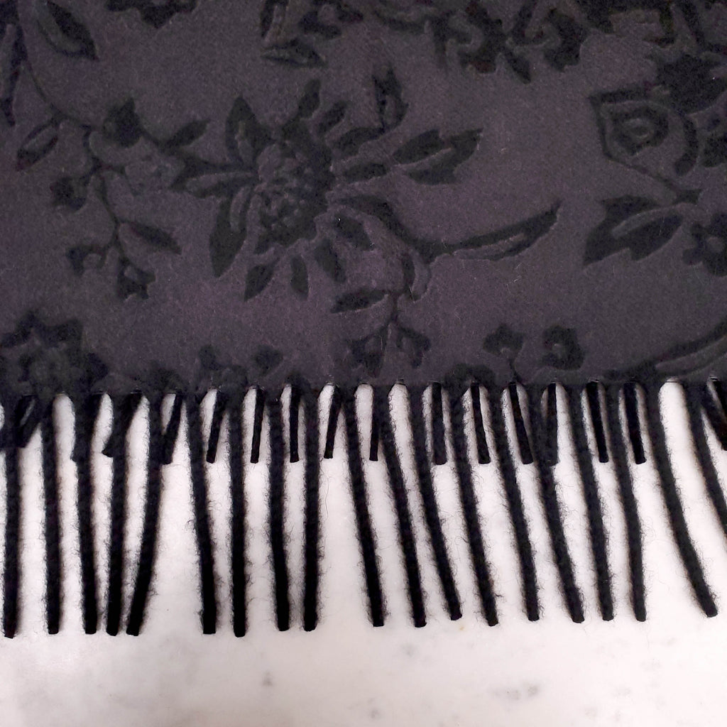 LORO PIANA BLACK FLORAL CASHMERE SCARF