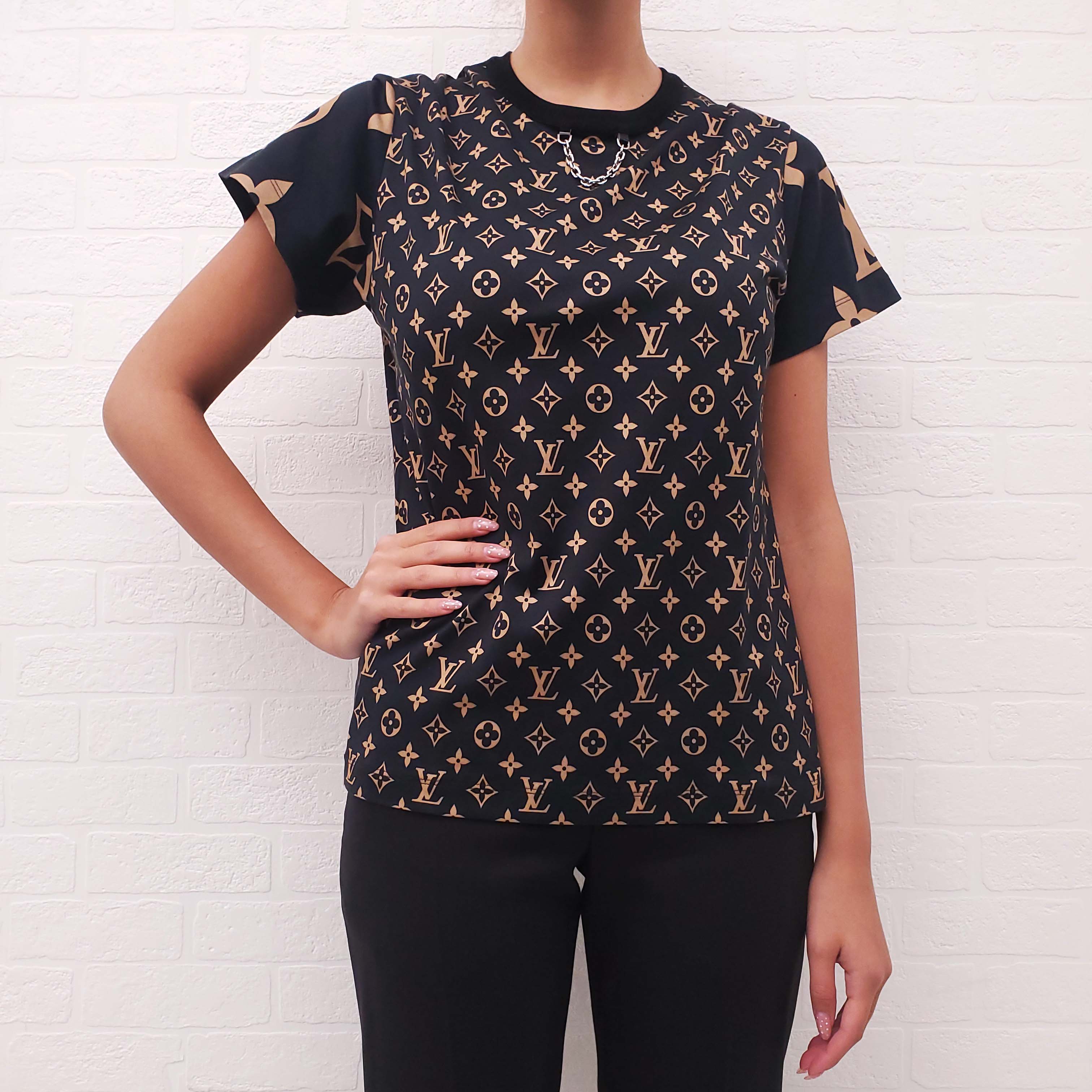 LOUIS VUITTON LOGO T-SHIRT WITH CHAIN DETAIL - SIZE M