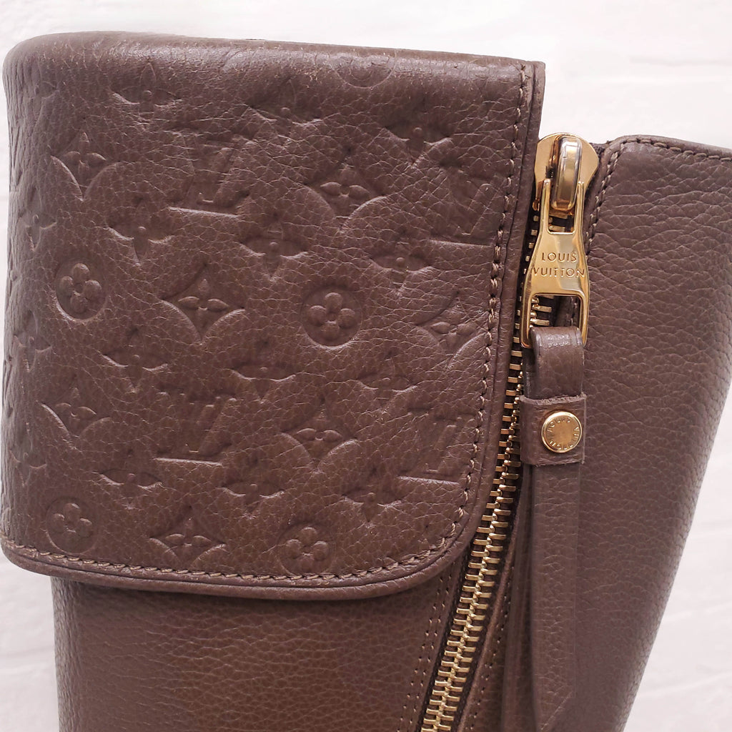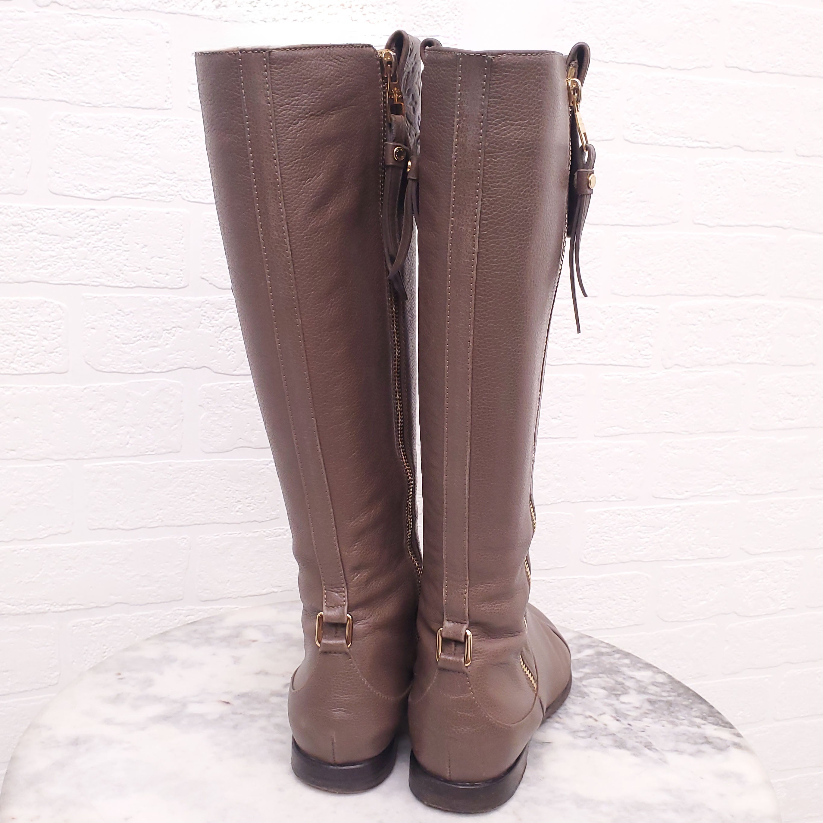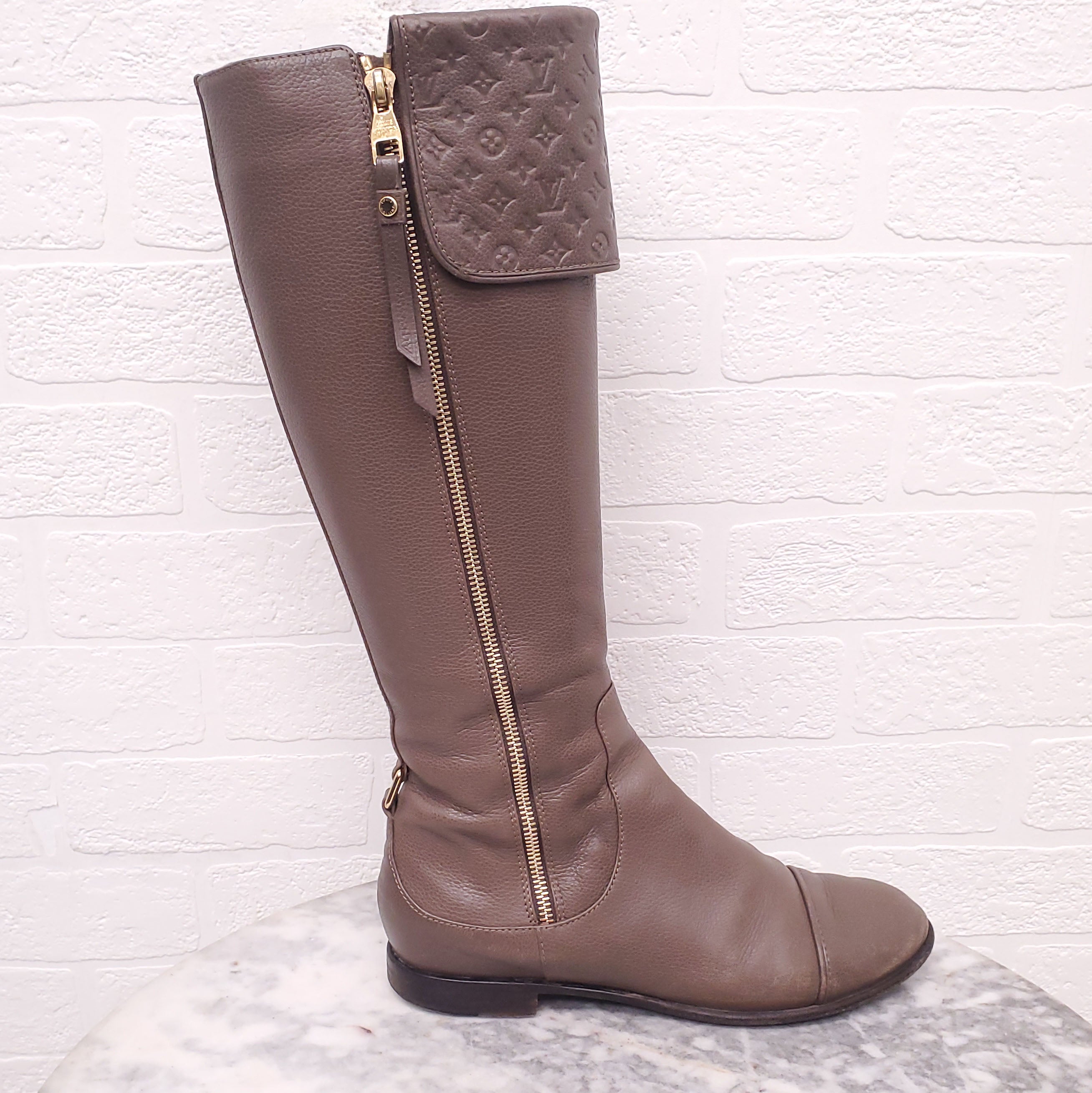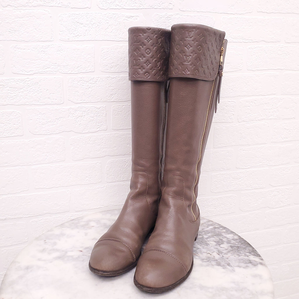 LOUIS VUITTON TAUPE LOGO LEATHER RIDING BOOTS - SIZE 37.5