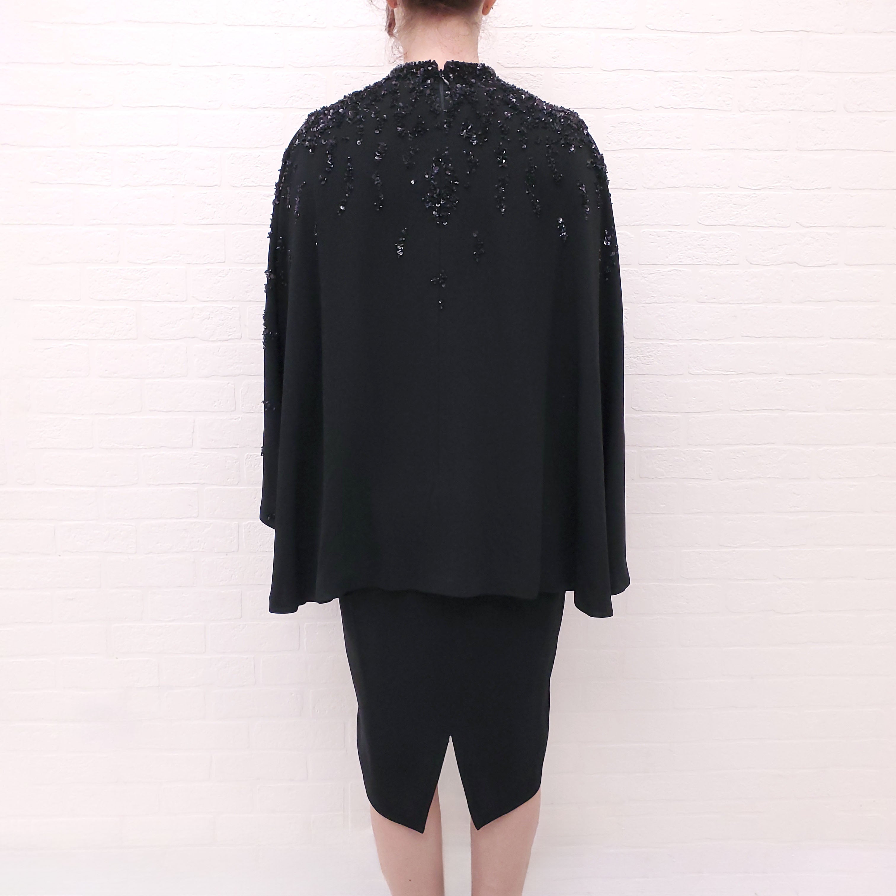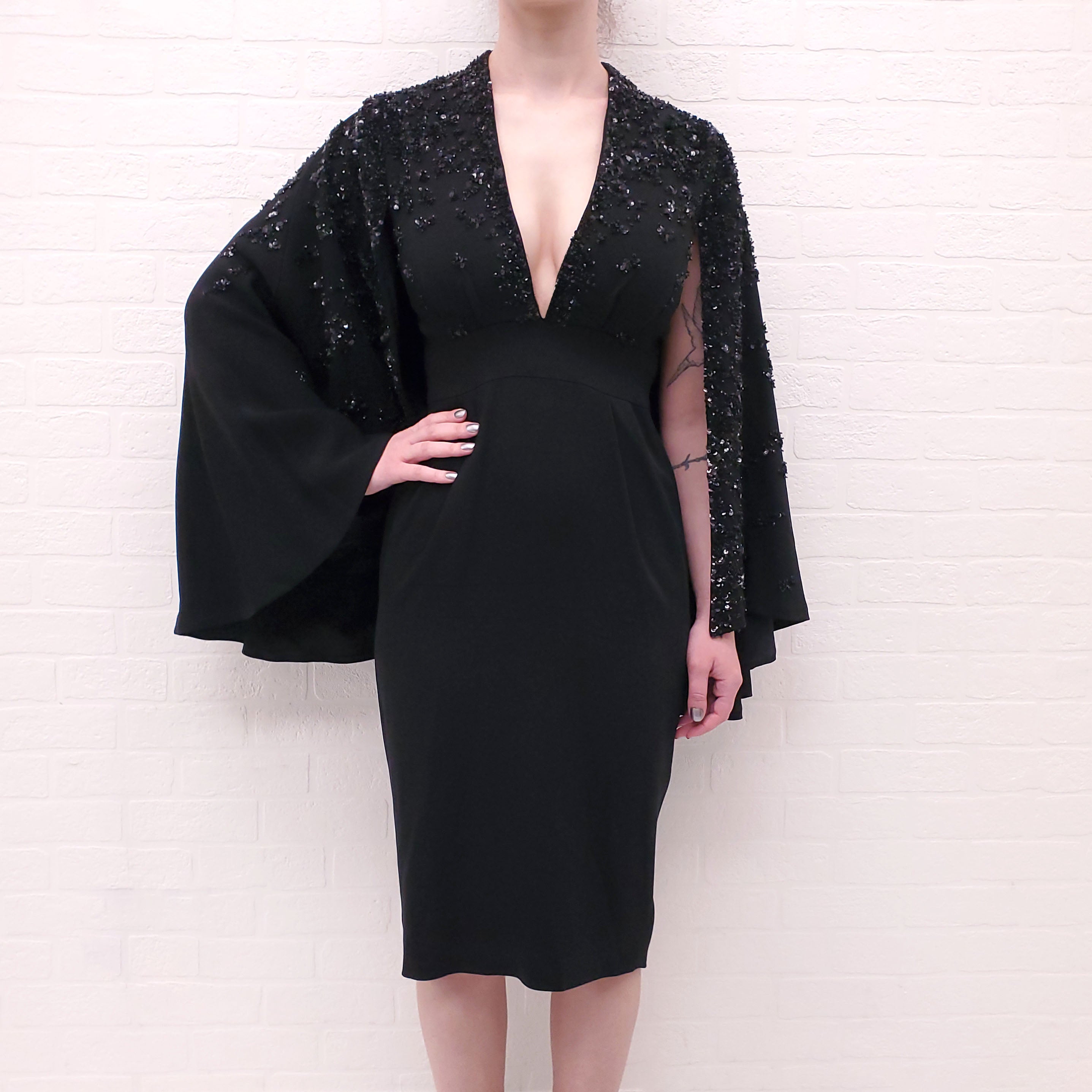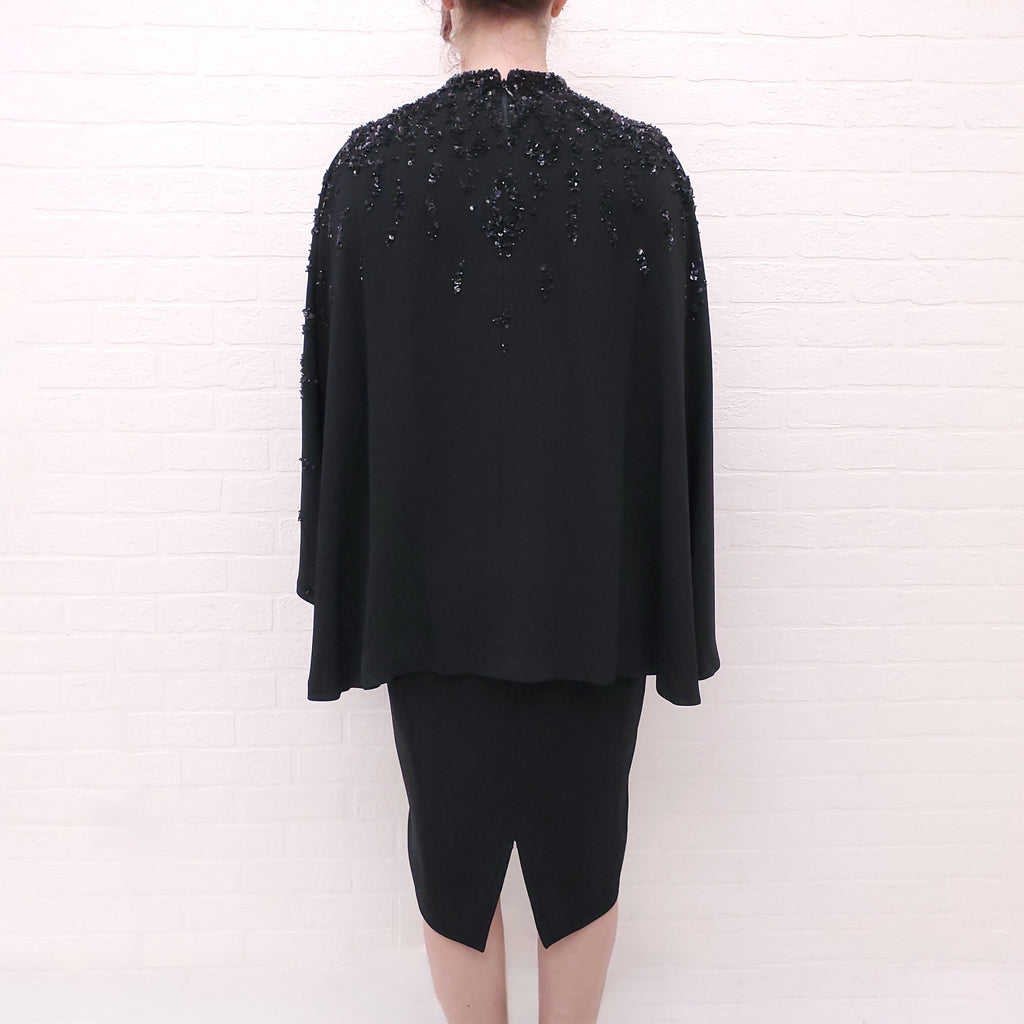 MARCHESA CAPE WITH SEQUIN BLACK DRESS - SIZE S