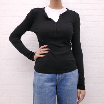 NILI LOTAN BLACK RIBBED LONG SLEEVE - SIZE S